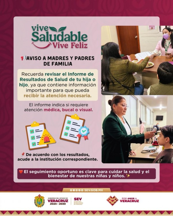SEV llama a familias a consultar informe de salud escolar de primaria