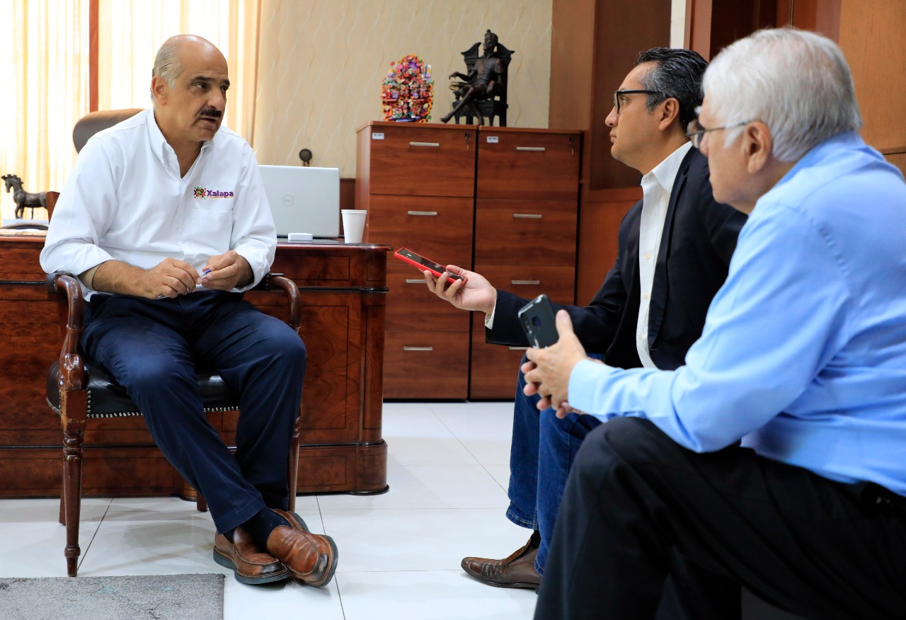 Pregunta: En general la ciudadanía no se queja de que se esté haciendo obra, se queja de que por todos lados está cerrado. Ricardo Ahued: Se ha tomado en cuenta eso, ya hay unas que se están abriendo, pero no nos quedaba de otra. El abandono de Xalapa es profundo. Las fugas de agua son impresionantes, los drenajes rotos, es un acto de responsabilidad que genera molestias, sí, pero o se aplica el impuesto y el dinero del pueblo en las obras o es sospechosismo de que por no molestar no se haga nada. Es un sacrificio real pero con un beneficio permanente. Hemos acelerado muchas obras. En Clavijero se estaba hundiendo la calle, el drenaje sanitario, el agua potable tirándose a los mantos freáticos. Hoy vamos a terminar casi con 50 mil metros lineales de obras hidráulicas sanitarias en la ciudad en un año. Es muy fuerte lo que digo. Y eso es importantísimo. Hacerlo no es sencillo pero va a traer consecuencias en beneficio porque cuánto vamos a detener de fugas, de drenajes que contaminen en suelo y aparte otros nuevos que está pidiendo la sociedad. El colector que está en Casa Blanca, de Monte Everest, se empieza en unos días ya a publicar y es una inversión de alrededor de 50 millones de pesos. Nosotros dando respuesta al esfuerzo que está haciendo el compromiso el Gobernador con otras obras, sentimos el compromiso de hacer dos colectores, el que está en la colonia 21 de marzo, que va en un 45 por ciento y de Casa Blanca. En donde están pavimentando una parte en las Ánimas, enfrente al Club Britania, están avanzando mucho. Se debe a la donación de todo el concreto, 4,650 metros de esa zona, fue donado por la familia de Don Antonio y Alfredo Chedraui, entre otros, y lo que está donando Ferche, ellos pusieron el recurso y la donación. Nosotros hicimos el drenaje, el agua potable, estabilizar las bases, se hizo integral toda la compostura, inclusive se va a cambiar la red aérea de iluminación que también ya tenía deficiencias, cableado, tuberías y postes, entonces es una obra grande pero gracias a la donación nos permite invertir allá y el recurso que hubiéramos ocupado de concreto se va para otras áreas.