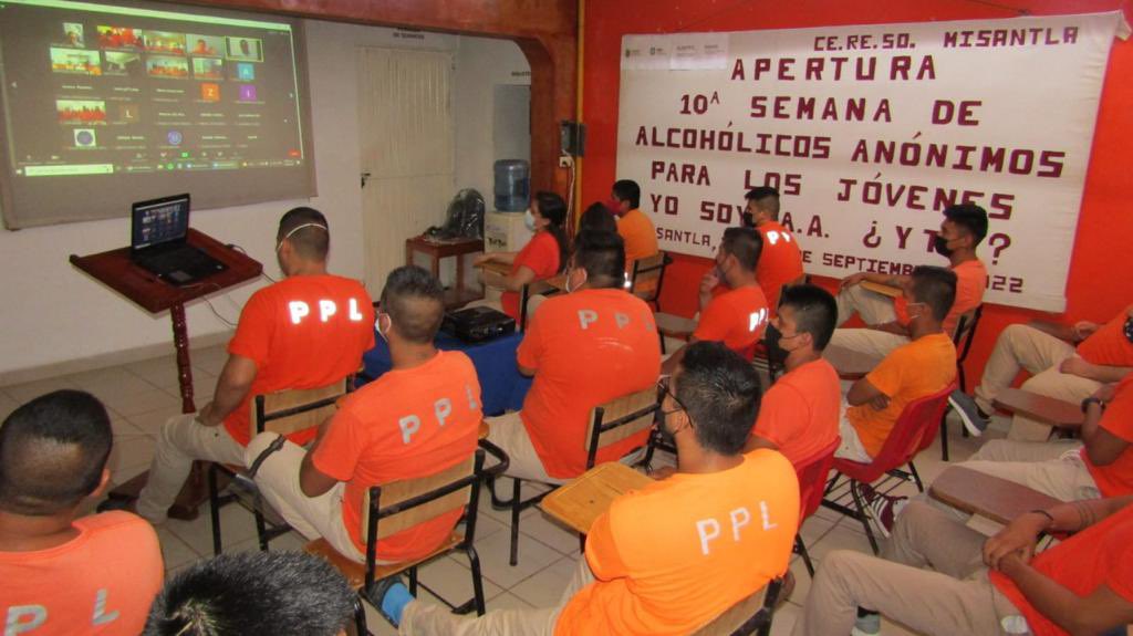 La Subsecretaría de Prevención y Participación Ciudadana, a cargo de Sarahí Peña Galaviz, está cerrando fuerte el mes patrio con diversas actividades encaminadas a fortalecer una sociedad inclusiva libre de la discriminación, así como concientizar, informar y cumplir en la prevención de adicciones. Para empezar, a través de la Dirección General de Vinculación Institucional, el área de Inclusión Social y Promoción Deportiva, se realizó la actividad de “Matrogimnasia Inclusiva” con personal administrativo con discapacidad física, en el Cuartel General Heriberto Jara Corona. Lo anterior con la finalidad de promover el trabajo en equipo con y sin discapacidad para fomentar la armonía, empatía, respeto a la integridad física. Aunado a lo anterior, en el ámbito educativo y cultural en los Centros Penitenciarios del Estado, con el apoyo de la Dirección de Actividades Artísticas de la SEV, se llevó a cabo una demostración musical en el Centro Penitenciario de Tantoyuca. Allí, la población Penitenciaria disfrutó de la participación del grupo “Zenzontle” y el Ensamble Folklórico Nacional, quienes interpretaron este género musical en compañía de un músico jaranero que actualmente se encuentra en privativa de libertad. Así mismo, y como parte de los esfuerzos para combatir las adicciones y el fortalecimiento para la reinserción social en Veracruz, en coordinación con la Central Mexicana de Servicios Generales de Alcohólicos Anónimos, A. C, se llevó a cabo de manera virtual la 10ª Semana Nacional de Alcohólicos Anónimos en los 17 CERESOS, así como en el Módulo de Prisión Preventiva de Veracruz y el Centro de Internamiento Especial para Adolescentes, Palma Sola.
