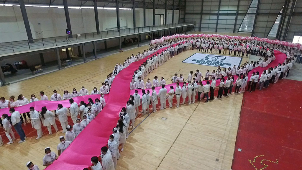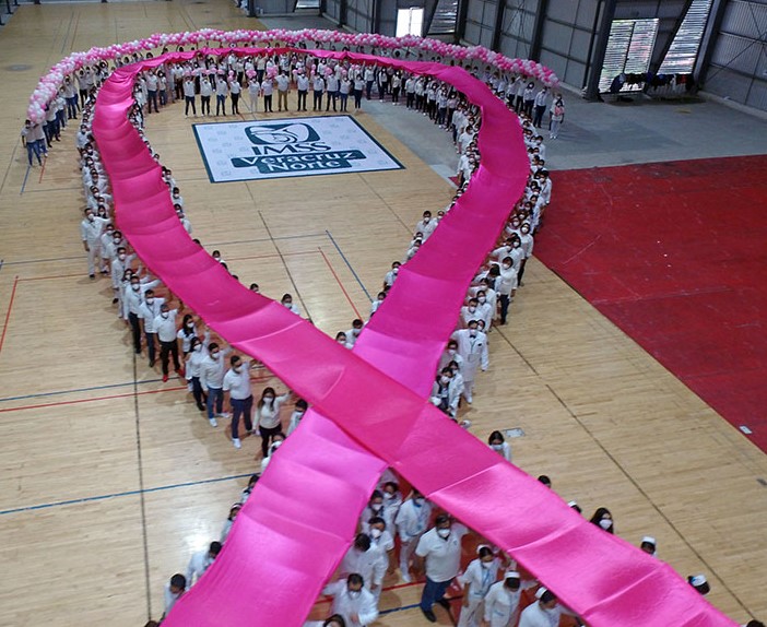 En el marco del Mes de Sensibilización sobre el Cáncer de Mama, el Instituto Mexicano del Seguro Social (IMSS) en Veracruz Norte, formó un "Lazo Rosa" en homenaje y solidaridad con las mujeres que padecieron cáncer de mama o que están librando la batalla. En dicho contexto, la titular del IMSS en esta representación, doctora María de Lourdes Carranza Bernal, expresó: "Veracruz Norte se suma al objetivo de reforzar la cultura de la prevención contra el Cáncer de Mama, con estrategias de salud para evitar complicaciones por esta enfermedad silenciosa, y con autocuidado podemos prevenir el padecimiento, ya que éste representa la primera causa de muerte en la mujer". En el IMSS, el examen clínico mamario se realiza anualmente a las mujeres a partir de los 25 años de edad en su Unidad de Medicina Familiar (UMF), y la mastografía de tamizaje se hace a mujeres sanas de 40 a 69 años. En el lazo participaron 400 personas que conforman las diferentes jefaturas y coordinaciones de la representación, quienes respetaron los protocolos de seguridad e higiene, con la convicción de generar conciencia entre la población sobre la importancia de la detección y diagnóstico oportuno de la enfermedad. Recuerda, ¡tócate, explórate, cuídate!