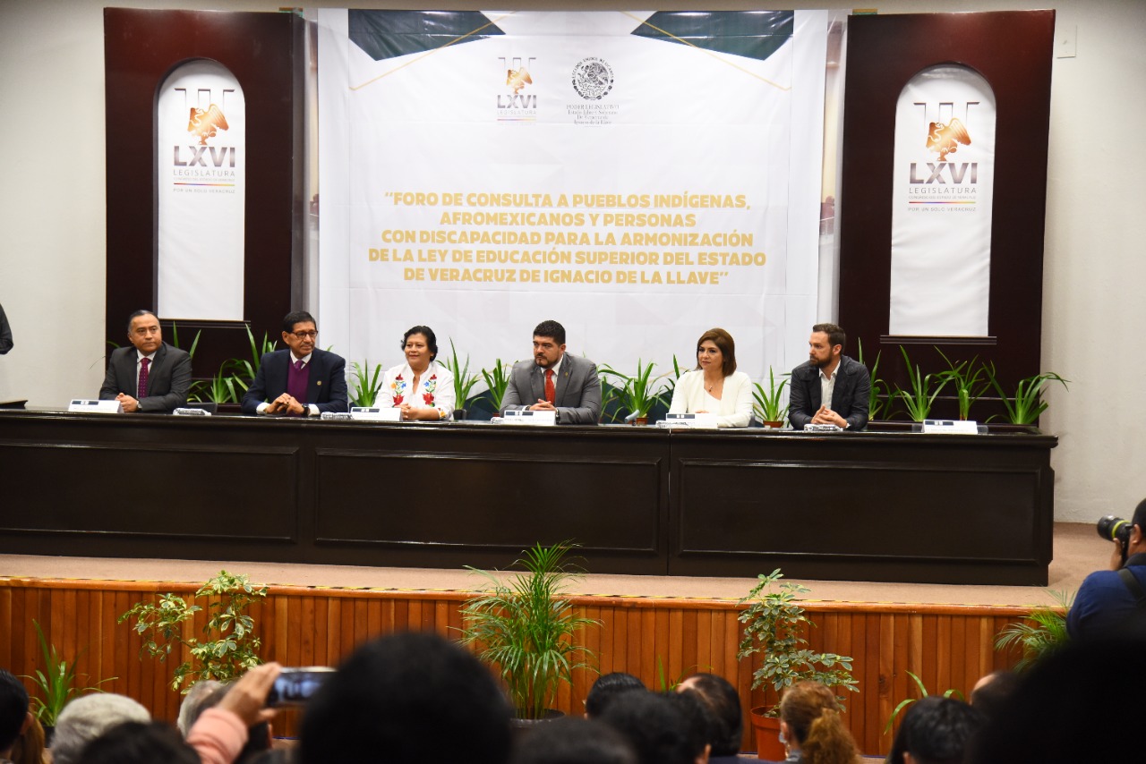 En su participación en el Foro de Consulta a los Pueblos Indígenas, Afromexicanos y Personas con Discapacidad para la Armonización de la Ley de Educación Superior del Estado y con la presencia del titular de la Secretaría de Educación de Veracruz (SEV), Zenyazen Roberto Escobar García, la diputada Lourdes Juárez Lara subrayó que una vez más este Congreso abre sus puertas para escuchar todas las voces, recibir propuestas y construir un intercambio de experiencias en aras de impulsar una Ley que esté en concordancia con la norma general, pero también con la realidad imperante en la educación estatal. En este Foro, realizado en el auditorio Sebastián Lerdo de Tejada del Congreso del Estado y que reunió a cientos de personas de diversas partes de la entidad, la presidenta de la Comisión Permanente de Educación y Cultura destacó la importancia de este ejercicio, "además del cumplimiento de una formalidad legalmente exigida es para legitimar las actividades que realiza este Poder Legislativo por el bien de la población a la cual representamos".