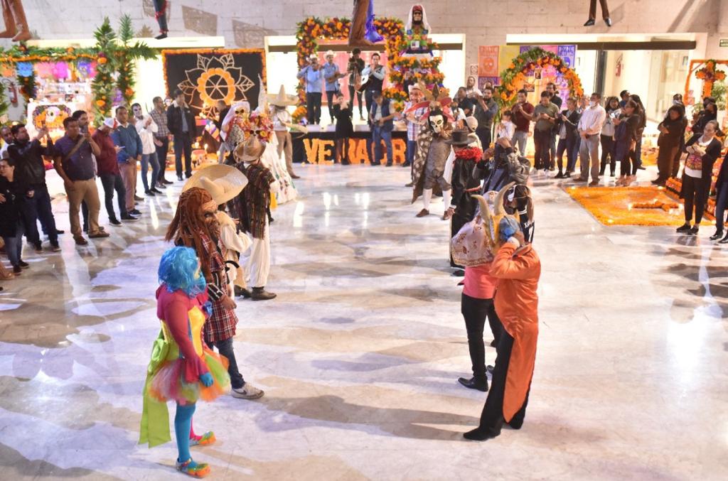 Con la asistencia del gobernador Cuitláhuac García Jiménez como invitado de honor, en la explanada del Palacio Legislativo de Veracruz, el Congreso del Estado presentó, la tarde-noche de este día, la muestra de altares, enmarcada por la conmemoración del Día de Muertos. Diputadas y diputados, encabezados por el presidente de la Junta de Coordinación Política (Jucopo), diputado Juan Javier Gómez Cazarín, recibieron al mandatario estatal y le invitaron a apreciar cada uno de los trabajos elaborados y presentados por diez equipos, conformados por personal de las diferentes áreas administrativas de este Poder. Los altares fueron confeccionados con características alusivas a las regiones de Veracruz (Xantolo, Misantla, Papantla e Ixhuacán de Madero), Michoacán (Janitzio) y Oaxaca, de las culturas zapoteca y mexica de la región del Sotavento y en honor a las Mujeres Ilustres en la Historia y de la cultura mexicana en general. Durante el acto inaugural, participó personal de las oficinas de la Jucopo, del diputado Roberto Francisco San Román Solana, de las secretarías General, de Fiscalización y Servicios Administrativos y Financieros, Dirección de Servicios Jurídicos, Servicios Legislativos, Contraloría Interna, Coordinación de Archivo, Biblioteca y Hemeroteca y del Centro de Estudios para la Igualdad de Género y Derechos Humanos (CEIGDH). Momentos previos, con la presencia del secretario de Gobierno, Eric Cisneros Burgos, el presidente de la Jucopo, diputado Juan Javier Gómez Cazarín, destacó que estas acciones fomentan el rescate y promoción de la cultura mexicana, “rica y vasta a todo el largo y ancho del estado”. Asimismo, indicó que es un compromiso con las y los veracruzanos preservar las costumbres y cultura de los pueblos originarios, de ahí el interés de realizar este tipo de eventos. Tras una breve reseña de los altares, sus elementos y composición, diputados, trabajadores y público en general realizaron un recorrido por la muestra y pudieron apreciar el colorido y los aromas propios de la temporada, además pudieron disfrutar de un fragmento de la representación de la tradicional fiesta de Xantolo. En el evento se contó con la asistencia del Tribunal Electoral de Veracruz (TEV), el magistrado presidente Roberto Eduardo Sigala Aguilar y la magistrada Tania Celina Vásquez Muñoz, y de las diputadas Cecilia Guevara, Presidenta de la Mesa Directiva de la LXVI Legislatura, Anilú Ingram Vallines, Arianna Guadalupe Ángeles Aguirre, Perla Eufemia Romero Rodríguez, Gisela López López, Nora Jéssica Lagunes Jáuregui, Rosalinda Galindo Silva, Elizabeth Cervantes de la Cruz, Illya Dolores Escobar Martínez y Citlali Medellín Careaga. Así como de los legisladores Roberto Francisco San Román Solana, Sergio Lenin Guzmán Ricardez, Luis Arturo Santiago Martínez, Fernando Arteaga Aponte, Rafael Gustavo Fararoni Magaña, Genaro Ibáñez Martínez, Paul Martínez Marie y Gonzalo Durán Chincoya, así como del secretario general del Congreso del Estado, Domingo Bahena Corbalá, y del secretario general del Sindicato Único de Trabajadores al Servicio del Poder Legislativo (SUTSPL), José de Jesús Rodríguez Hernández.