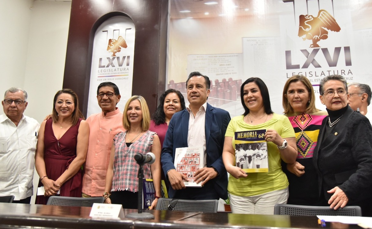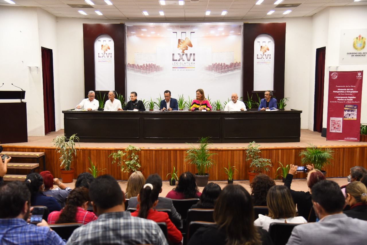 En el auditorio Sebastián Lerdo de Tejada del Congreso del Estado se llevó a cabo la presentación de los libros “Memorias del 68, fotografías y fotogramas” e “Insurgencia Popular, forma es fondo”, coordinados por la senadora de la República por Veracruz, Gloria Sánchez Hernández, y que tuvo como invitado de honor al gobernador del estado, ingeniero Cuitláhuac García Jiménez. Con la asistencia de la presidenta de la Mesa Directiva de la LXVI Legislatura, diputada Cecilia Guevara; de las legisladoras Adriana Esther Martínez Sánchez, Illya Dolores Escobar Martínez, Rosalinda Galindo Silva y Ana Miriam Ferráez Centeno, así como del diputado Fernando Arteaga Aponte, dio inicio la presentación de estas obras con la respectiva relatoría de cada una de éstas.