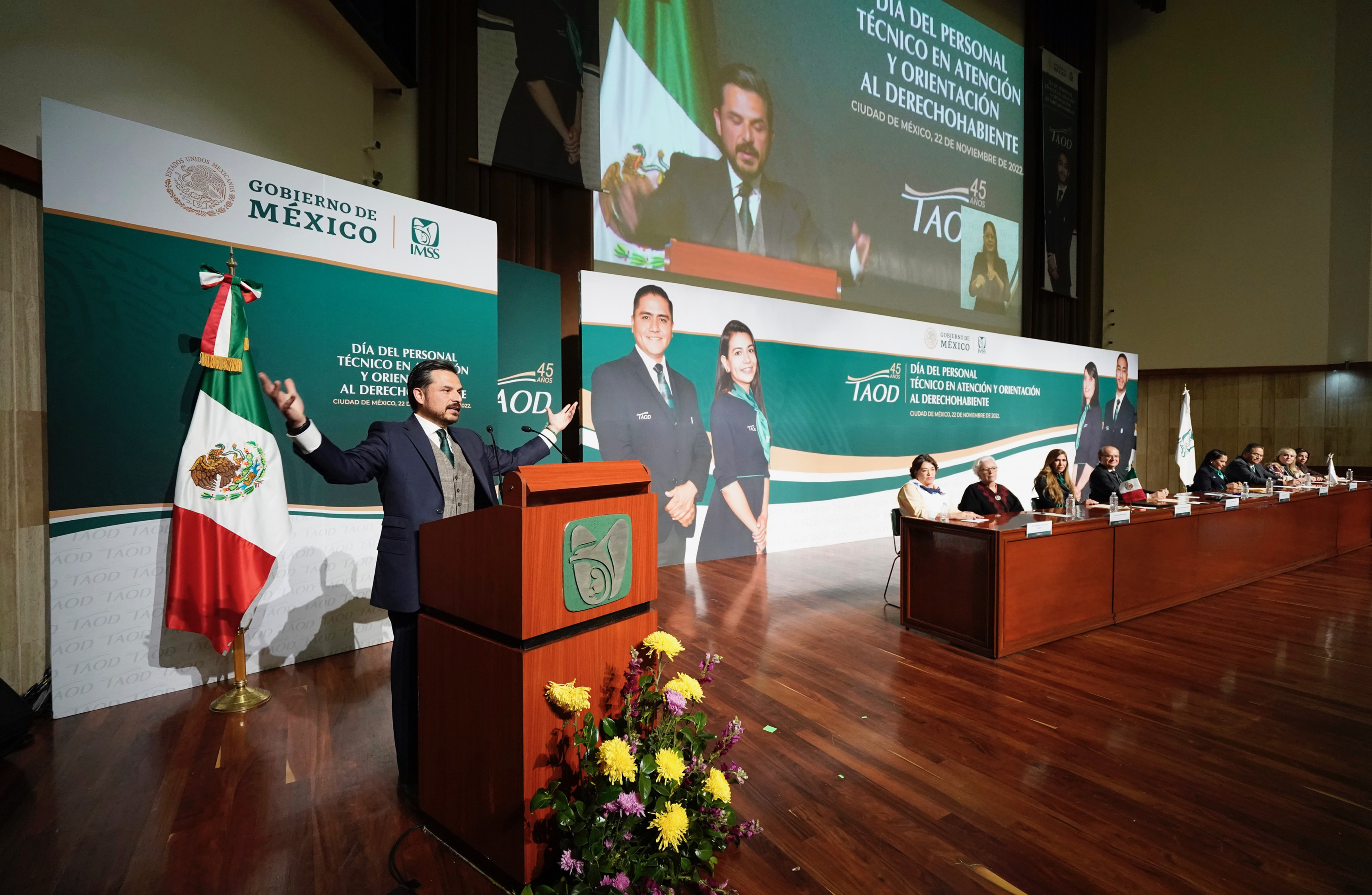 El Instituto Mexicano del Seguro Social (IMSS) logró certificar al 100 por ciento del Personal Técnico en Atención y Orientación al Derechohabiente (TAOD) en todo el país a través del Consejo de Normalización y Certificación de Competencias Laborales (CONOCER), en el Estándar de Competencia 1268 “Atención al Usuario Basada en la Cultura del Buen Trato”, lo cual ha permitido reducir las quejas y otorgar un mejor trato a la derechohabiencia. En el marco de la Ceremonia del 45 aniversario del Día del Personal TAOD, el director general del IMSS, Zoé Robledo, señaló que se trabaja con el Sindicato Nacional de Trabajadores del Seguro Social (SNTSS) a través del programa Identidad IMSS para que se trate bien a las personas y se capacite a personal del Instituto en materia de derechos humanos, perspectiva de género, cultura laboral y responsabilidad administrativa. Durante el evento realizado en la Unidad de Congresos del Centro Médico Nacional Siglo XXI, informó que durante 2022 se han registrado 6 millones 23 mil 876 gestiones en apoyo a la derechohabiencia, atenciones de quejas que se han traducido en usuarios satisfechos de que la institución tomara en cuenta sus preocupaciones o necesidades. Indicó que este dato representa 51 por ciento más de gestiones en comparación con 2019. Además, se tuvo una disminución del 16.6 por ciento en quejas de servicio en 2022 comparado a 2019, de 37 mil 573 a 31 mil 320; y una disminución de 35.2 por ciento en quejas de maltrato en 2022 respecto a 2019, de 13 mil 448 a 8 mil 716. Zoé Robledo agregó que el IMSS es la institución que logró atender el 100 por ciento de las peticiones que llegan al área de atención ciudadana de la Presidencia de México, esfuerzo que se concretó gracias a la titular de la Unidad de Atención a la Derechohabiencia (UAD), Gabriela Paredes Orozco, y a su equipo de trabajo, a quienes reconoció su compromiso. Zoé Robledo refirió que las más de mil 750 Técnicas y Técnicos en Atención y Orientación al Derechohabiente en los mil 28 módulos en todo el país, representan dignamente 45 años de historia “la mejor cara del Seguro Social”.