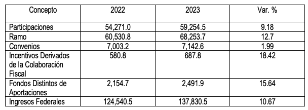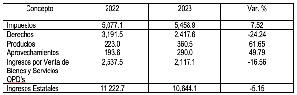 Como han quedado los ingresos estatales comparativamente entre 2022 y 2023