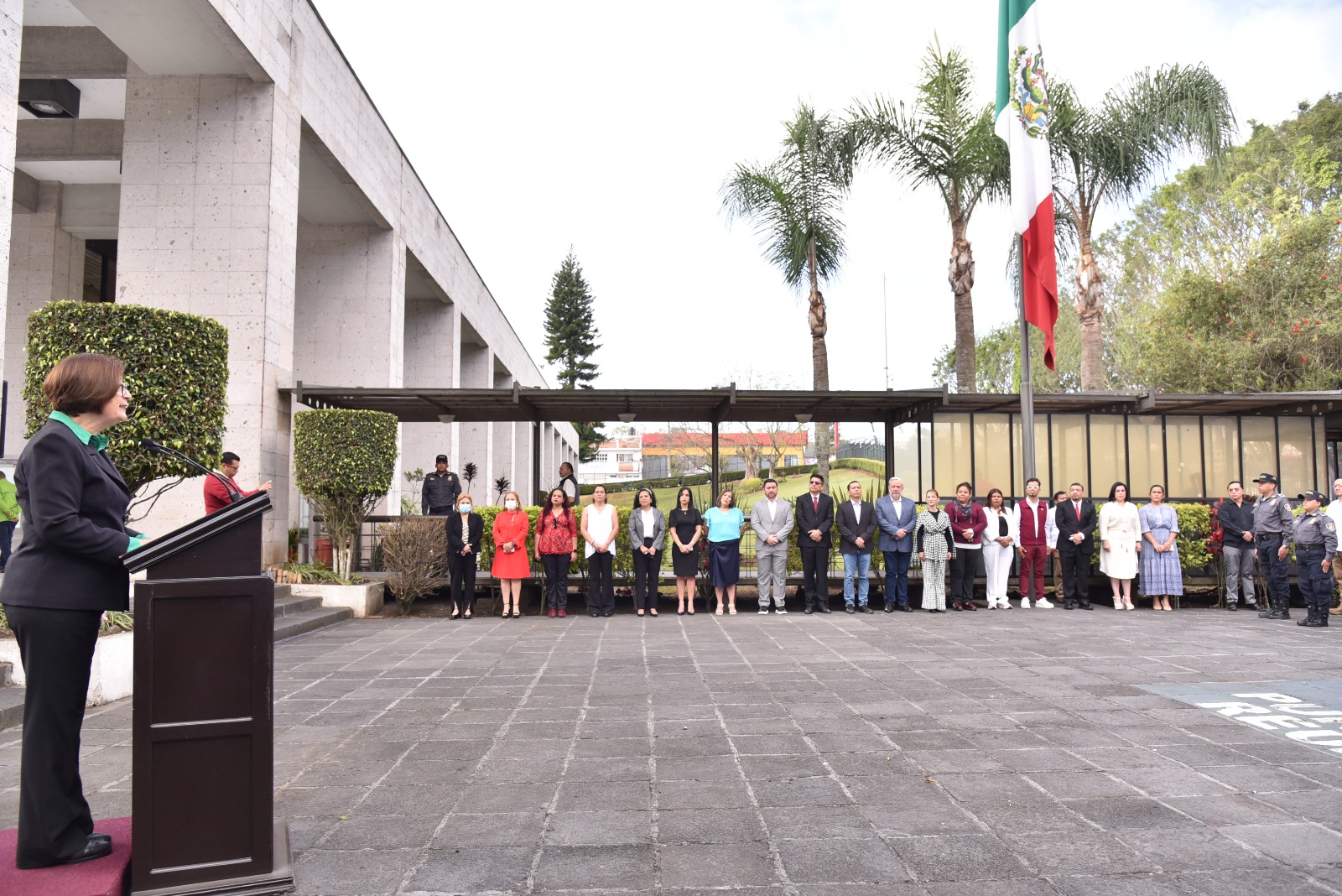 Ante la presencia de las diputadas Rosalinda Galindo Silva, Ana Miriam Ferráez Centeno, Gisela López López, Magaly Armenta Oliveros e Illya Dolores Escobar Martínez, así como del diputade Gonzalo Durán Chincoya, la presidenta del Congreso invitó a ser un instrumento de justicia para todos aquellos ciudadanos que aún esperan la ayuda, “seamos el abrazo fraterno, la mano que los ayude a levantarse, la mirada sincera de quien trabaja pensando en los demás y como dice el presidente de la República, solo siendo buenos, se puede ser feliz”. En el octogésimo noveno aniversario del establecimiento del Día de la Bandera por el presidente, General Lázaro Cárdenas del Río, la Diputada recordó que en el país las niñas y los niños son educados para admirar y enaltecer los símbolos patrios como el Himno, el Escudo y la Bandera nacional, “aprendimos que representa nuestra cultura plural, la tierra que avisamos y cultivamos, las raíces de los pueblos originarios con sus varias lenguas, música, comida y las instituciones que nos han dado identidad”, aseveró.