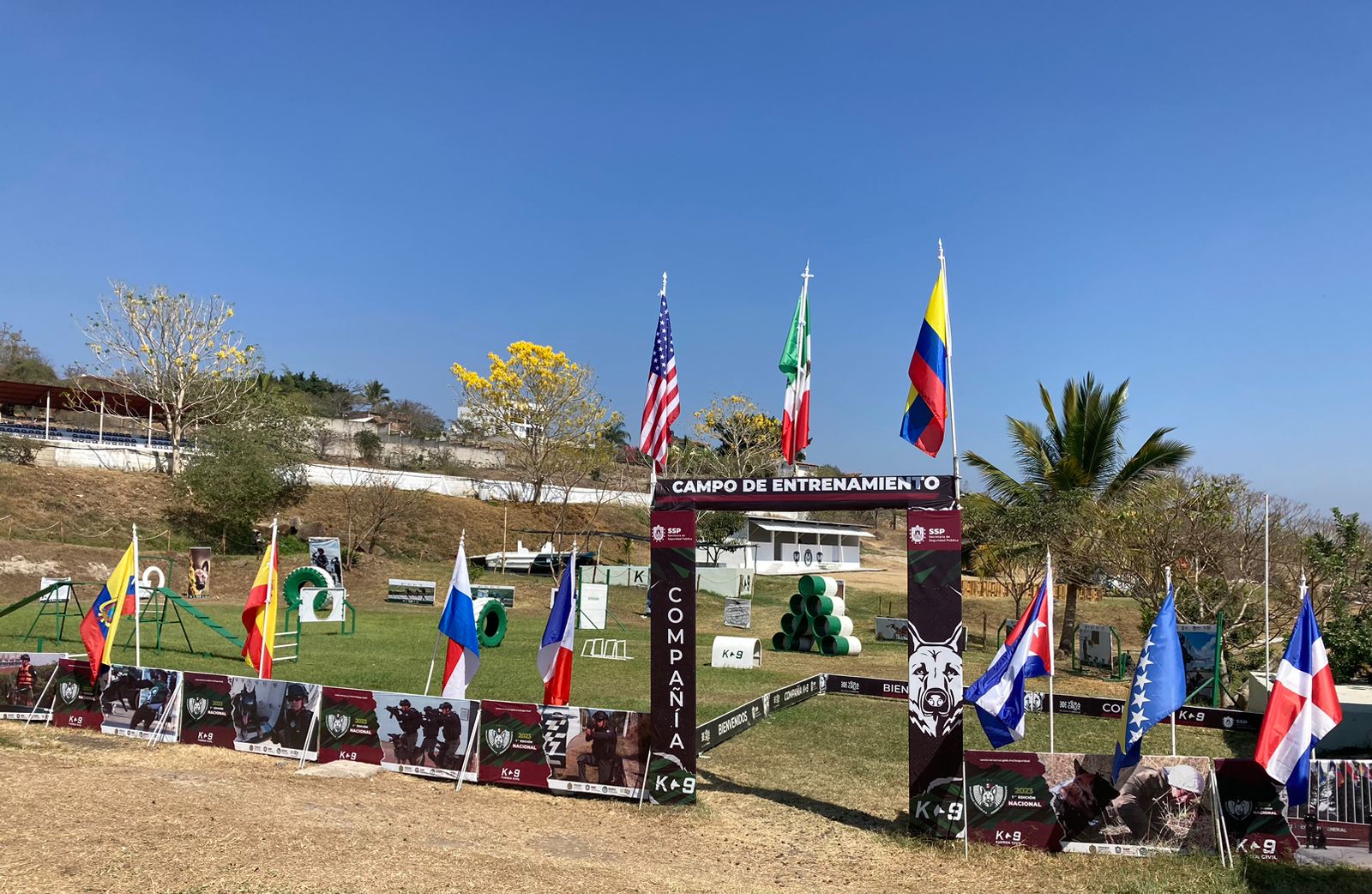 Por Gabriela Diez El entrenamiento canino en Veracruz, nos llena de orgullo, debido a que la Compañía K9, es ejemplo a nivel nacional e internacional en capacitación y certificación de entrenadores para la formación de excelentes Agentes Caninos. Tuvimos la oportunidad de visitar las instalaciones de la Compañía K9 de la Fuerza Civil de Veracruz, conocimos la Plaza de Banderas, en la cual se encuentran las banderas de los 9 países del mundo, que se han acreditado aquí en el entrenamiento de Agentes Caninos, además están las banderas de los 10 países con los cuales se ha trabajado en conjunto, para capacitar y certificar a entrenadores y agentes de la policía de México, de países como Canadá, Francia, España, Estados Unidos, Colombia y Ecuador. En Veracruz se imparten diplomados de especialización en búsqueda y rescate de personas, búsqueda de narcóticos, guardia y protección, microtráfico, entre otros.