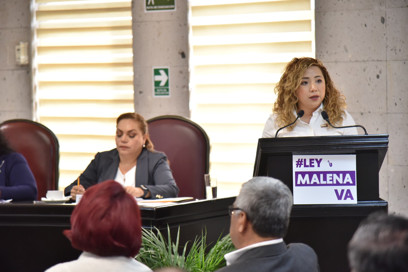 En las agravantes, aumentaría en un tercio la pena cuando cause deformidad o daño permanente, entorpezca o debilite permanentemente una extremidad o cualquier otro órgano; incrementaría la pena hasta la mitad cuando la conducta delictiva cause deformidad en el rostro, pérdida parcial o total del oído, vista, habla o incapacidad permanente para trabajar, cause alteración o daño en el aparato genital, en las funciones de reproducción sexual o atente contra el ejercicio de la autonomía sexual. La diputada Itzel López dijo que su propuesta, denominada en medios de comunicación como Ley Malena, que busca tipificar el delito de violencia ácida, hace referencia a la saxofonista María Elena Ríos, quien fuera agredida con ácido en el estado de Oaxaca por órdenes de su expareja sentimental, Juan Antonio Vera Carrizal. Indicó que su iniciativa tiene por objeto definir y establecer los tipos y las modalidades de violencia contra las mujeres y las niñas, para que los gobiernos estatal y municipal realicen las acciones encaminadas a su prevención, atención, sanción y erradicación, atentos a los principios de coordinación y concurrencia gubernamental. Mencionó que el estado de Puebla es el primero en legislar al respecto y que hay entidades como Ciudad de México, Hidalgo, Campeche y San Luis Potosí que tienen en análisis reformas similares. Por lo que dijo confiar en el respaldo de todas las fracciones políticas para que Veracruz cuente con esta herramienta legal. A esta iniciativa, turnada a las comisiones permanentes unidas de Justicia y Puntos Constitucionales y para la Igualdad de Género, se adhirió el Grupo Legislativo de Morena.