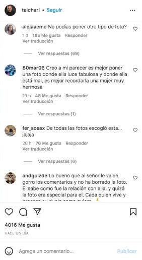 La publicación inmediatamente se llenó de críticas negativas, en las que usuarios aseguraban que era de mal gusto, incluso quienes indicaban que era una falta de respeto para la fallecida actriz "Que mal gusto de tu parte", "Que mal en publicar esta imagen. Hubiera cortado la foto es una grosería para su hijo", "Se trata de ella, no de ti, compadre. Pudiste haber puesto una foto de ELLA sola" se podía leer.