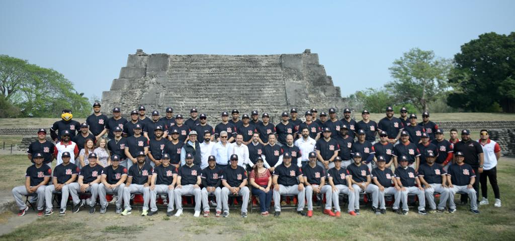 Úrsulo Galván, Ver., 28 de marzo de 2023.- Autoridades estatales y directivos presentaron a la plantilla oficial de El Águila de Veracruz para la temporada 2023 de la Liga Mexicana de Béisbol desde la zona arqueológica de Zempoala, “pues quisimos vincular el rescate de un equipo de mucha historia con todo lo que significa nuestro estado”, afirmó el gobernador Cuitláhuac García Jiménez. Tras agradecer el esfuerzo de empresarios y jugadores por asistir, señaló que en la región del Sotavento el deporte predilecto es el béisbol y por eso de aquí han surgido grandes peloteros como Beto Ávila; en este sentido, la idea es catapultar a la juventud para que pueda sentirse identificada e inspirada al conocer una bella tradición. “A El Águila de Veracruz lo vamos a sentir muy nuestro con esta fotografía”, manifestó, porque era su intención mostrar una ciudad prehispánica y así difundir la belleza cultural a la par de fomentar la activación física mediante eventos que den al municipio de Úrsulo Galván mayor proyección, pues cabe mencionar que el próximo 01 de abril tendrá lugar un rodada ciclista de Zempoala a Chachalacas. Al respecto, la titular del Instituto Veracruzano de la Cultura, Silvia Alejandre Prado, agradeció al Instituto Nacional de Antropología e Historia haber facilitado este espacio que hoy se promueve como detonante del turismo y motor de transformación que va a generar desarrollo social y económico, lo cual reconoció y aplaudió el alcalde Eder Jero Hernández Lara. En su intervención, el mánager Matías Carrillo García se dijo encantado de estar al frente de un equipo con 120 años de historia, muy recordado y querido, por lo cual buscarán el campeonato este año para satisfacción de una afición tan bonita como la veracruzana.