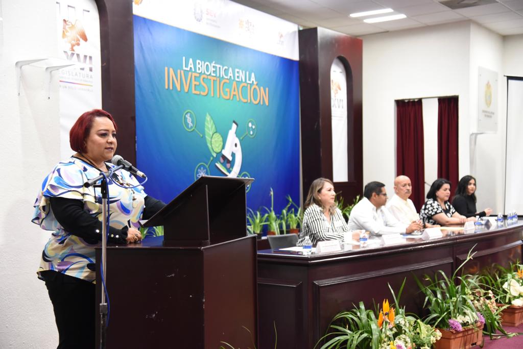 Al dar la bienvenida a asistentes a la conferencia La Bioética en la investigación, a cargo de la doctora Elvira Morgado Viveros, la presidenta de la Comisión Permanente de Salud y Asistencia de la LXVI Legislatura del estado, diputada Adriana Esther Martínez Sánchez, afirmó que la Bioética constituye una invaluable oportunidad para reflexionar, encontrar y visibilizar soluciones que se traduzcan en bienestar y progreso social. En el auditorio Sebastián Lerdo de Tejada del Palacio Legislativo y con la presencia de la diputada Rosalinda Galindo Silva y del secretario técnico del Consejo Interinstitucional Veracruzano (CIVE), Ernesto Efrén del Moral Ventura, la diputada Martínez Sánchez aseveró que el mundo enfrenta innumerables desafíos y que, pese a los avances de la ciencia, aún existen senderos por descubrir y transitar.