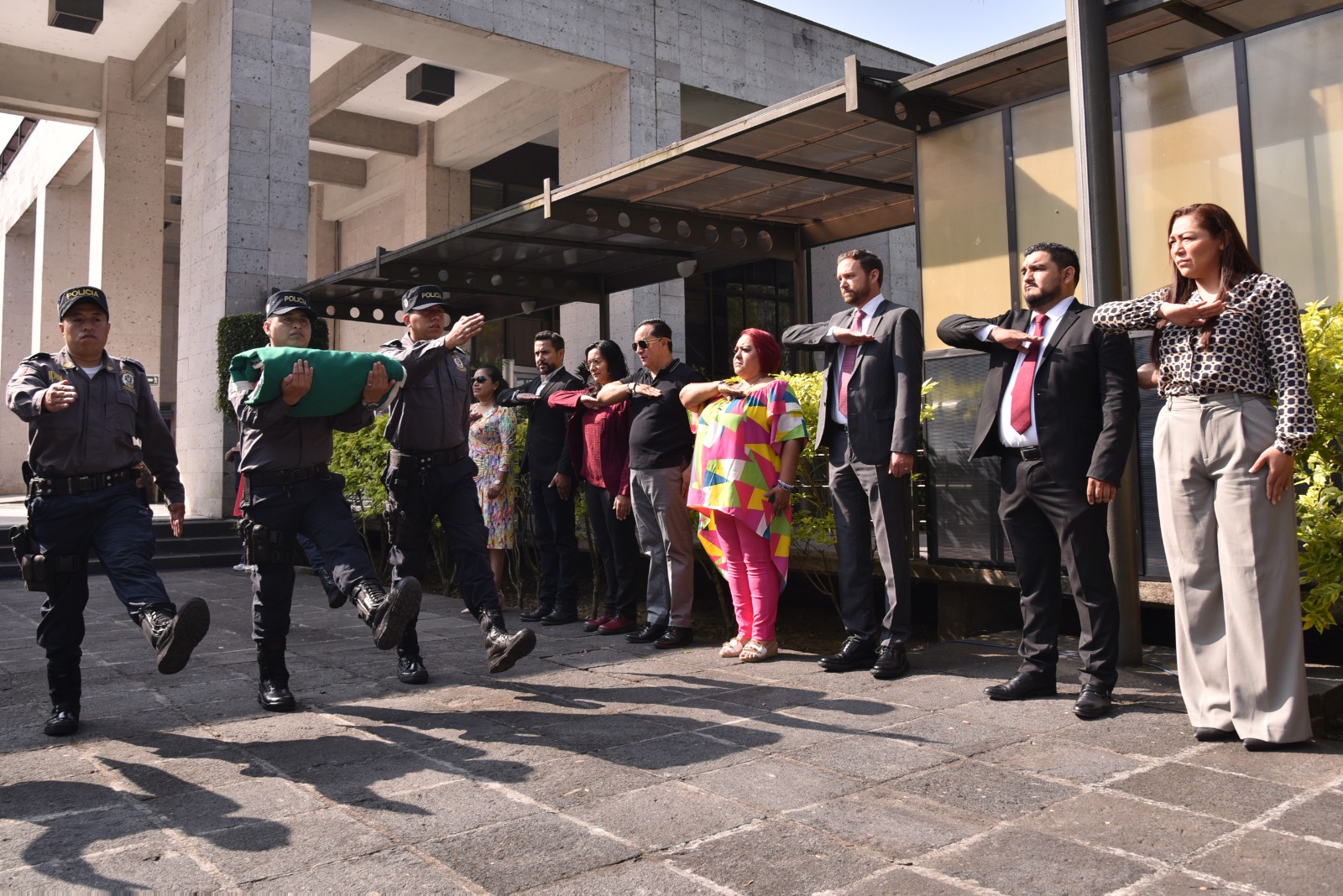 Asistieron a este acto cívico la secretaria de Servicios Administrativos y Financieros, Irma Ariadna Leal Morales; la jefa del Servicio Médico, Claudia del Rosario García Pérez; el secretario del Sindicato Único de Trabajadores al Servicio del Poder Legislativo (SUTSPL), José de Jesús Rodríguez Hernández; el comisionado del Instituto de la Policía Auxiliar y Protección Patrimonial para el estado (IPAX), Héctor Manuel Riveros Hernández, así como trabajadoras y trabajadores de este Congreso e invitados.