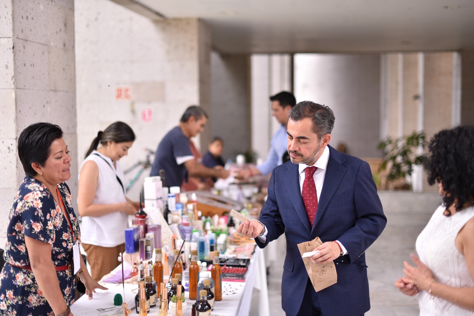En este sentido, reconoció la labor de la empresaria Susana Fernández, integrante de la organización, quien, preocupada por impulsar la economía familiar de los integrantes de Fusión Xalapa, busca estos espacios de exposición para dar a conocer sus productos e incentivar la economía, aseguró. Finalmente, el Diputado hizo una invitación a que conozcan las artesanías del grupo de Fusión Xalapa, que se presentan en diversos lugares de la región, y así tener la oportunidad de adquirir alguna artesanía cien por ciento veracruzana.