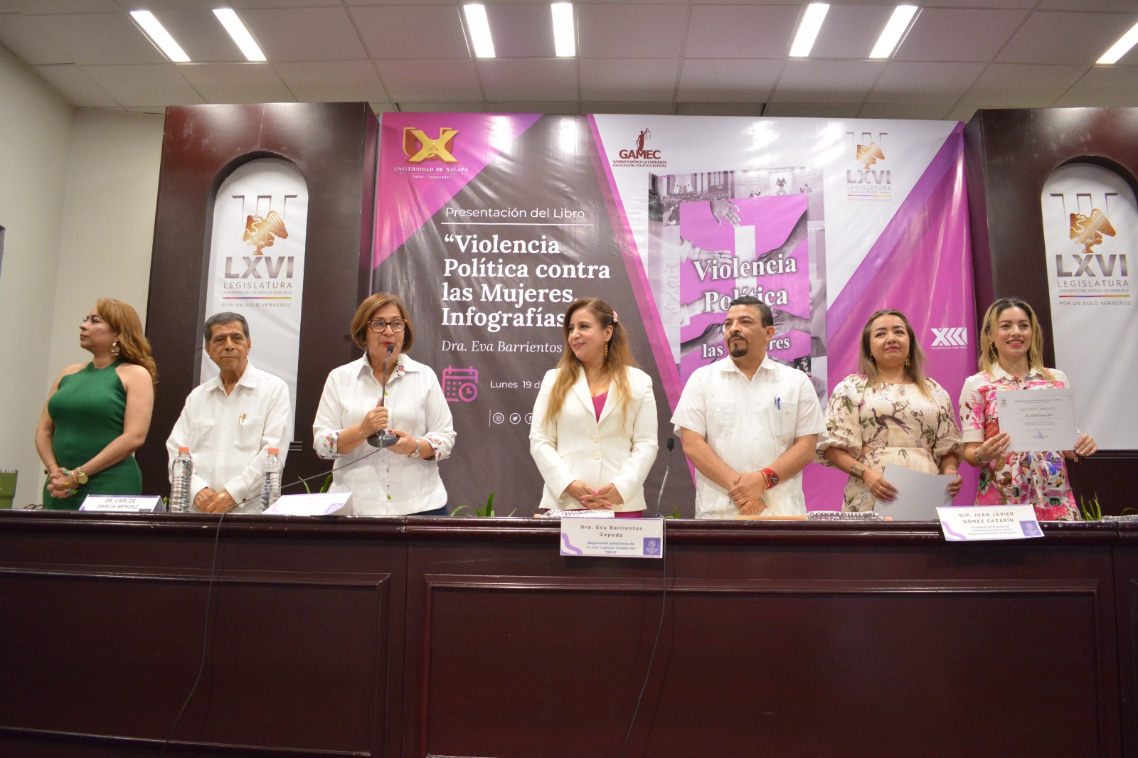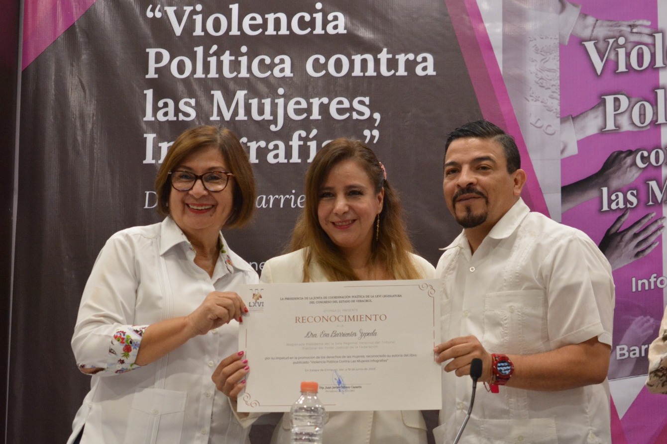 La presidenta de la Mesa Directiva de la LXVI Legislatura, diputada Margarita Corro Mendoza, atestiguó la presentación del libro Violencia Política contra las Mujeres, Infografías, de la autoría de la magistrada Eva Barrientos Zepeda, presidenta de la Sala regional Xalapa del Tribunal Electoral del Poder Judicial de la Federación (TEPJF), que resume y simplifica gráficamente algunas de las sentencias, en el periodo de 2019 a 2022, en el órgano jurisdiccional a su cargo. Con la presencia del presidente de la Junta de Coordinación Política (Jucopo), diputado Juan Javier Gómez Cazarín, la legisladora Corro Mendoza dijo que hablar de violencia política contra las mujeres es una materia compleja en términos técnicos y sociales, por lo que la obra traduce con agilidad y simpleza casos estudiados por el TEPJF, “haciéndolos fácil de entender por alguien que no sea profesional del Derecho”, precisó.
