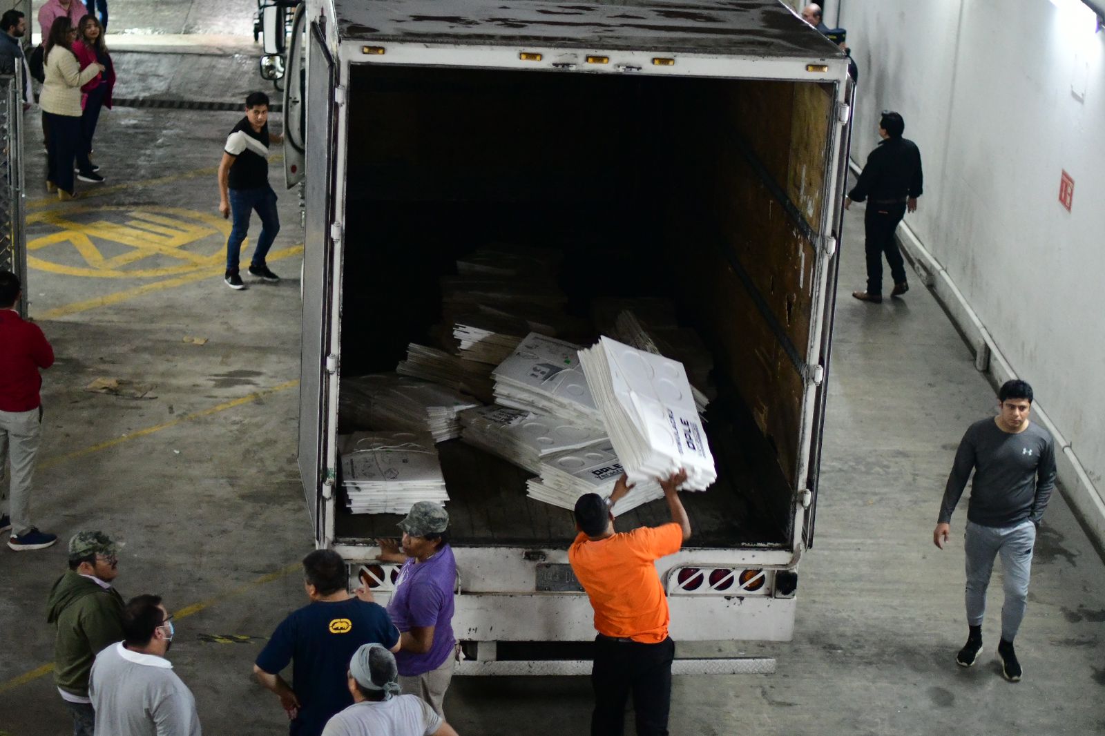Xalapa, Veracruz, 24 de agosto de 2023. El Organismo Público Local Electoral del Estado de Veracruz (OPLE Veracruz) realizó el embarque del material electoral y otros elementos de procesos electorales anteriores, que no son susceptibles de ser reutilizados, para su destrucción por la empresa Corporativo Zeg, S.A. de C.V., con el objetivo de liberar espacio en la bodega. La actividad comenzó el miércoles 23 de agosto de 2023, en cumplimiento del Acuerdo OPLEV/CG076/2023, que autorizó la destrucción del material electoral de procesos electorales locales anteriores como: urnas, bases porta urnas, paquetes electorales y mamparas; los cuales fueron enviados en tres unidades de carga. La supervisión la realizó la Consejera Presidenta del OPLE Veracruz, Marisol Alicia Delgadillo Morales; el Presidente de la Comisión Permanente de Capacitación y Organización Electoral, Roberto López Pérez; el integrante de la citada Comisión, Quintín Antar Dovarganes Escandón; el Consejero Electoral, Fernando García Ramos; el Secretario Ejecutivo, Luis Fernando Reyes Rocha; el Director Ejecutivo de Organización Electoral, Luis Enrique Galicia Martínez; y la representante del Partido Político Local “Fuerza por México Veracruz”, Claudia Bertha Ruiz Rosas.