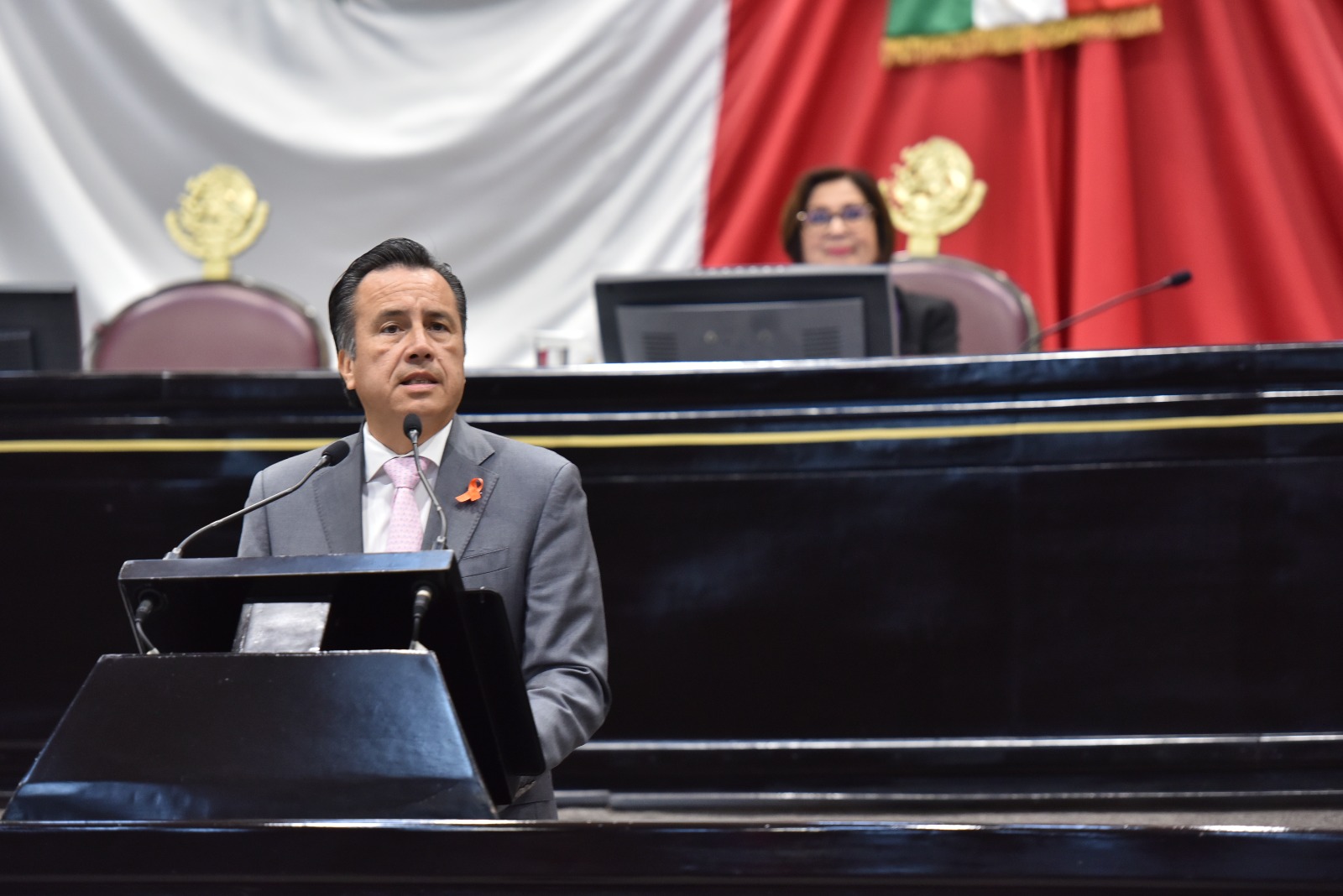 Mensaje del Gobernador del Estado A su vez, el gobernador Cuitláhuac García Jiménez manifestó que con la entrega de la medalla Heberto Castillo Martínez “recordamos al científico, al gran luchador por las libertades, al político íntegro” y aseveró que “servir a los demás, anteponer el sacrificio propio en beneficio de las mayorías, el conocimiento científico a servicio de la sociedad, es el honor que atribuimos en la entrega de la medalla que lleva su nombre”. También reiteró su distinción a la doctora Vianey del Rocío Torres Pelayo porque “abrirse paso en la búsqueda del conocimiento científico muy especializado requiere dedicación con sacrificios. Y poner los logros personales al servicio de los demás es lo que hoy le reconocemos”. A la Sesión Solemne asistieron legisladoras y legisladores locales y federales, magistradas y magistrados, servidoras y servidores públicos de los tres órdenes de gobierno, titulares de los organismos autónomos y representantes de organizaciones civiles, presidentas y presidentes municipales, invitadas e invitados especiales.