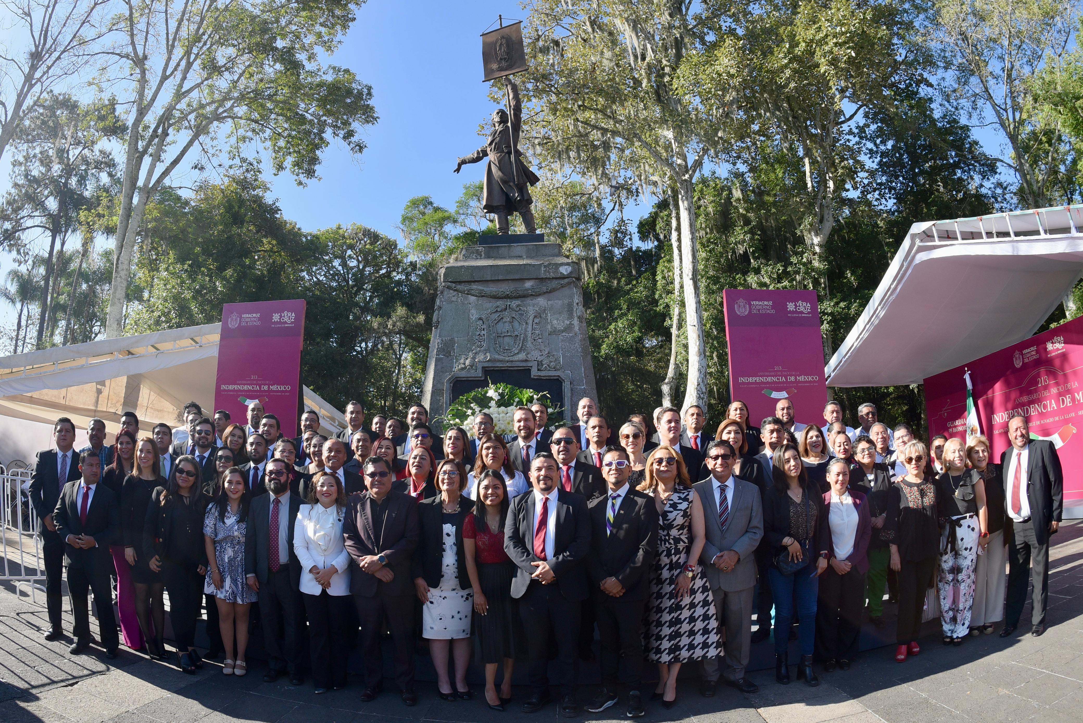 Las y los integrantes de la LXVI Legislatura del estado, encabezados por la presidenta de la Mesa Directiva, diputada Margarita Corro Mendoza, y por el presidente de la Junta de Coordinación Política, diputado Juan Javier Gómez Cazarín, realizaron la Guardia de Honor ante el monumento a Don Miguel Hidalgo y Costilla, en conmemoración por el CCXIII aniversario del inicio de la lucha por la independencia nacional. Tras el depósito de la ofrenda floral, la legisladora Margarita Corro pronunció un discurso en nombre del Congreso de Veracruz, en el que deseó que el tributo que este día se rindió a Don Miguel Hidalgo sirva para que las nuevas generaciones reconozcan al Padre de la Patria y a todas las personas que entregaron su vida para sacar a esta nación de la esclavitud y la opresión.