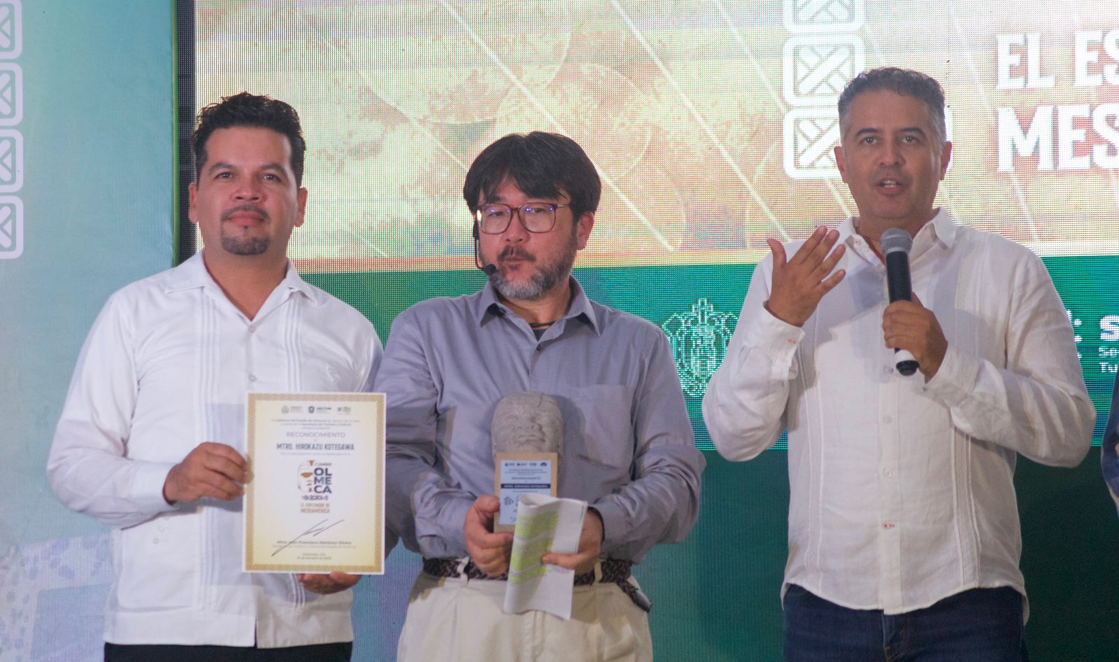 Acompañado por los alcaldes de Catemaco y Santiago Tuxtla, Juan José Rosario Morales y Brianda Kristel Hernández Topete, respectivamente, presenció el Ritual de las princesas olmecas, a cargo del ballet Olmecayoth donde se agradeció a los cuatro puntos cardinales por la culminación exitosa de esta iniciativa. Antes, el público asistente escuchó las ponencias "Relación Olmeca/Zoque", impartida por Geney Torruco Sarabia, así como también "¿Quiénes fueron los olmecas? Una mirada actualizada de nuestros antepasados desde una perspectiva arqueológica" de Alberto Ortiz Brito. |