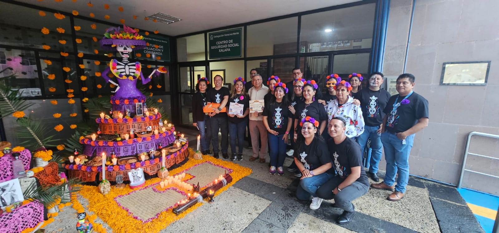 Con el propósito de preservar las tradiciones mexicanas, personal de las Jefaturas y Coordinaciones de la Representación del Instituto Mexicano del Seguro Social (IMSS) en Veracruz Norte realizaron altares en conmemoración del Día de Muertos. El tema de los altares fue libre y se calificó el respeto a la tradición, uso de los elementos, originalidad, creatividad, diseño, calidad del montaje, presentación del altar y a los participantes se les entregó un reconocimiento. La muestra de altares estará expuesta del 30 de octubre al 6 de noviembre de 2023 a la entrada del Centro de Seguridad Social y en el mezanine de la sede delegacional.