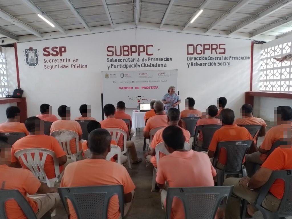 Por otra parte, en días pasados, con el fin de priorizar el derecho a la salud en la población penitenciaria, acción fundamental para el Gobernador Cuitláhuac García Jiménez, la SSP a través de la Dirección General de Prevención y Reinserción Social, con apoyo del IMSS BIENESTAR, se realizaron pláticas informativas en los 17 CERESOS y el Módulo de Prisión Preventiva. Lo anterior, en el marco del Día Nacional de la Lucha contra el Cáncer de Próstata, en la que se realizan periódicamente dichas conferencias dirigidas a la población privada de la libertad, así como exámenes clínicos y revisiones médicas generales como parte del proceso preventivo.