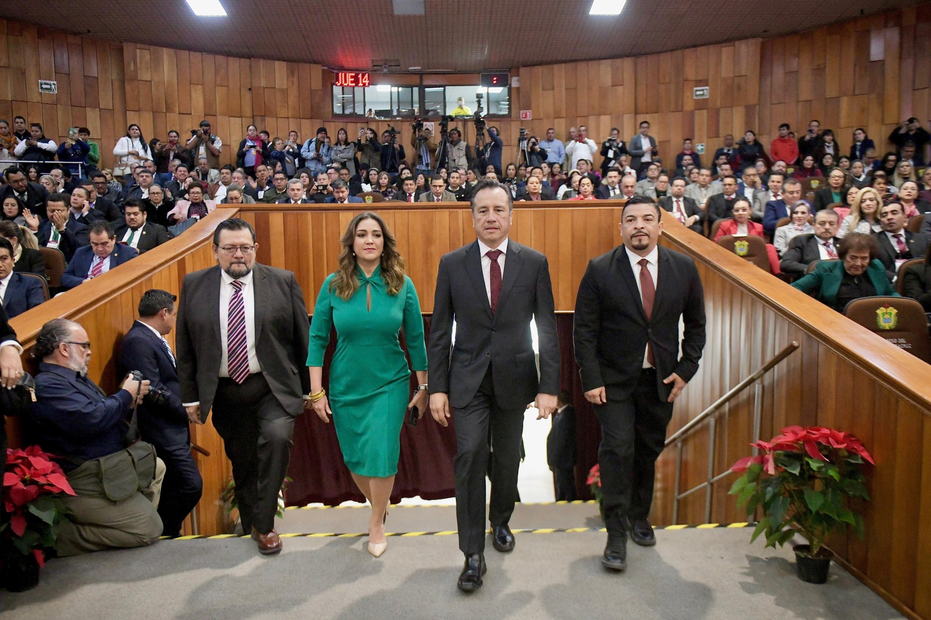 Xalapa, Ver., 14 de diciembre de 2023.- Rendido el Quinto Informe de manera puntual, así como la Glosa por parte de las y los titulares de dependencias, el gobernador Cuitláhuac García Jiménez compareció en el Poder Legislativo, donde resumió las acciones que han puesto el sello de la Cuarta Transformación en todas las regiones, dando cabida a las voces disidentes y oportunidad de ser escuchadas mediante los representantes populares en un marco democrático y de respeto. Enfatizó que están en ejecución los trabajos más grandes del año fiscal y destacó la inversión de mil 932 millones de pesos desde la Secretaría de Infraestructura y Obras Públicas, con el ejemplo del camino Tlachichilco-Zacualpan, el acceso a Texcatepec, la rehabilitación de la carretera Zontecomatlán-Ilamatlán, la pavimentación de Acultzingo a Soledad Atzompa y el mantenimiento del tramo Isla-Playa Vicente, además de la construcción del puente El Maguey, en José Azueta. “Algunos adversarios políticos que en su momento tuvieron oportunidad de gobernar quisieran criticarnos y no les queda de otra que hacerlo con falsedades; lo que no pueden negar es que nosotros sí estamos haciendo las obras que resuelven los problemas que ellos dejaron crecer”, manifestó, al señalar que en el portal de Transparencia están las geolocalizaciones y fotografías de los hechos porque es muy difícil que acudan a comprobar por sí mismos.