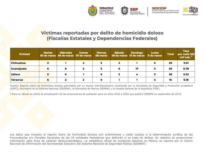 | Veracruz reduce los homicidios y cumple objetivo de no rebasar la media nacional de tres al día |
