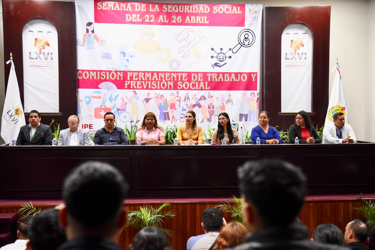 Para coadyuvar en el conocimiento de la cultura de la seguridad social y de su importancia en las organizaciones, la Comisión Permanente de Trabajo y Previsión Social del Congreso del Estado, presidida por la diputada Gisela López López, inauguró la Semana de la Seguridad Social, que se desarrolla del 22 al 26 de abril con diversas actividades a cargo de dependencias estatales. En el auditorio Sebastián Lerdo de Tejada del Palacio Legislativo y con la presencia de la encargada de despacho de la Secretaría de Trabajo, Previsión Social y Productividad (STPSP) del Gobierno del Estado, Yoshadara Landa Vásquez, y de la vocal de la Comisión Permanente de Protección Civil, diputada Illya Dolores Escobar Martínez, la legisladora López López se congratuló con la celebración de este encuentro, el cual, aseguró, será enriquecedor, productivo y de aprendizaje en cada una de las actividades.
