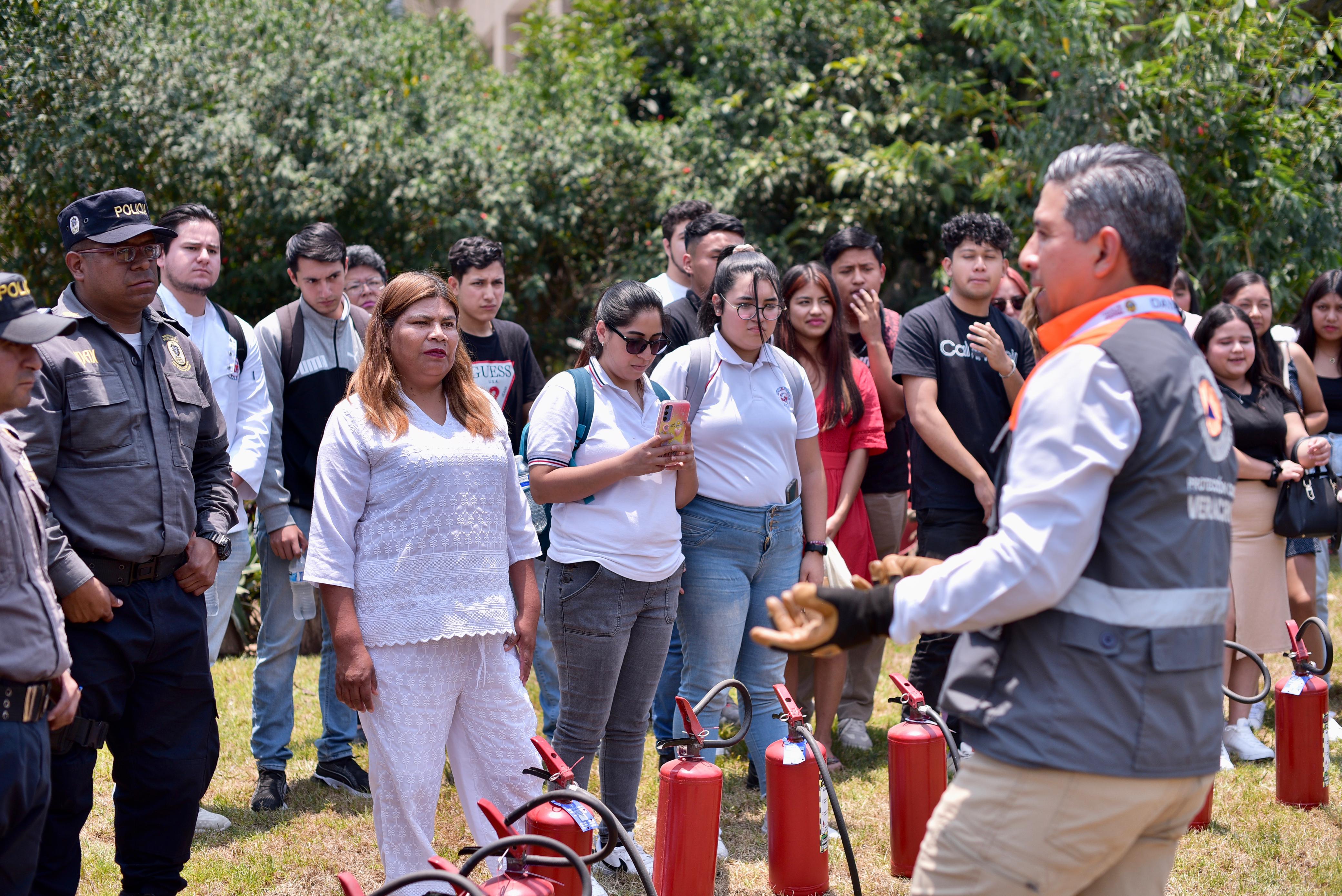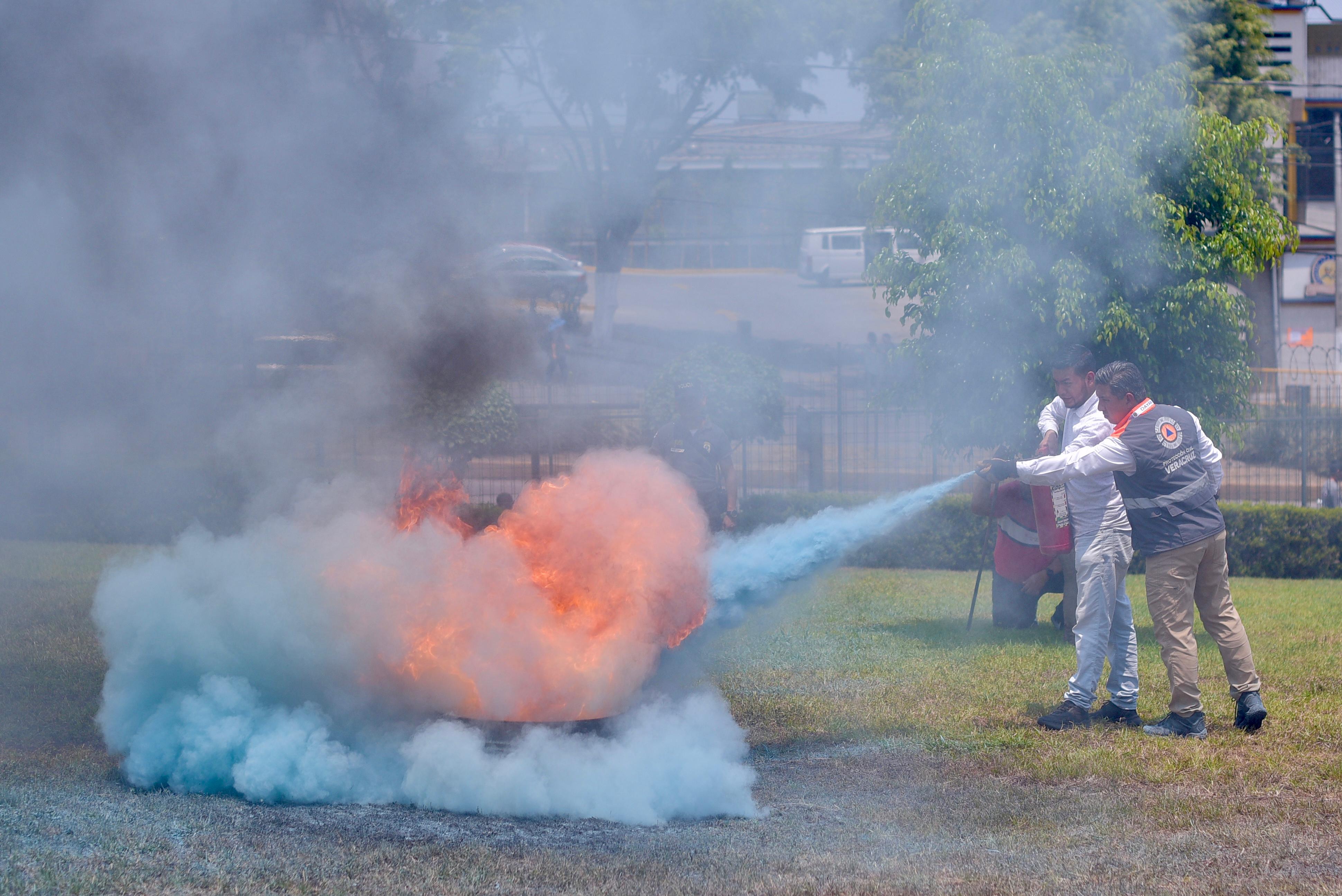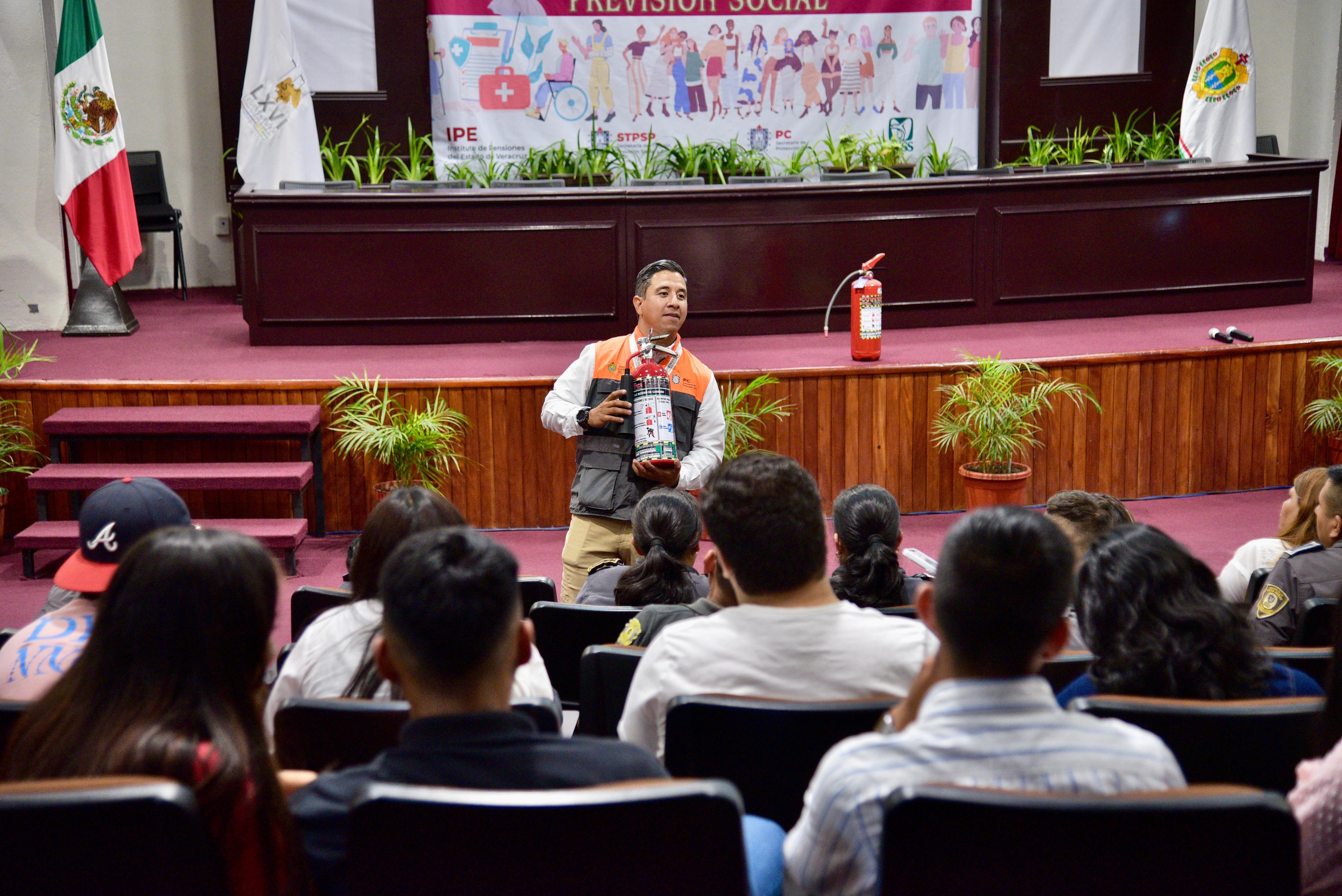 Capacitación en uso de extintores Previamente y como última actividad de la Semana de la Seguridad Social, personal del Congreso y estudiantes de la Universidad Tajín, que asistieron como invitados especiales de la diputada Gisela López, recibieron la capacitación en el manejo y uso de extintores, impartida por Dayán Hernández Roque, de la dirección de Capacitación, Adiestramiento y Difusión de la Secretaría de Protección Civil (SPC) del estado.