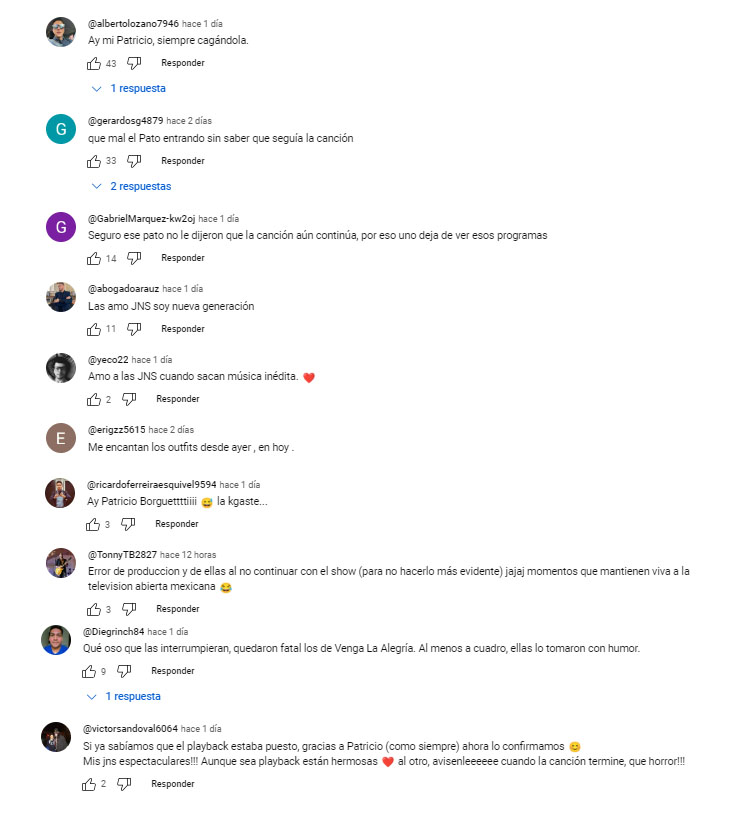 Incómodo momento el que vivieron las chicas de JNS durante la promoción de su nueva canción en Venga la Alegría, cuando el conductor Patricio Borghetti, interrumpió su presentación de la canción Europa, antes de que terminara, lo que dejó al descubierto que se encontraban haciendo PlayBack. Mientras las JNS interpretaban su más reciente sencillo, Europa, cuando 'Pato' irrumpió en el escenario aplaudiendo la actuación de Angie, Melissa y Regina, quienes sorprendidas no sabían cómo reaccionar, pues la pista siguió sonando con sus voces en ellas, mientras ellas respondían al saludo del conductor.