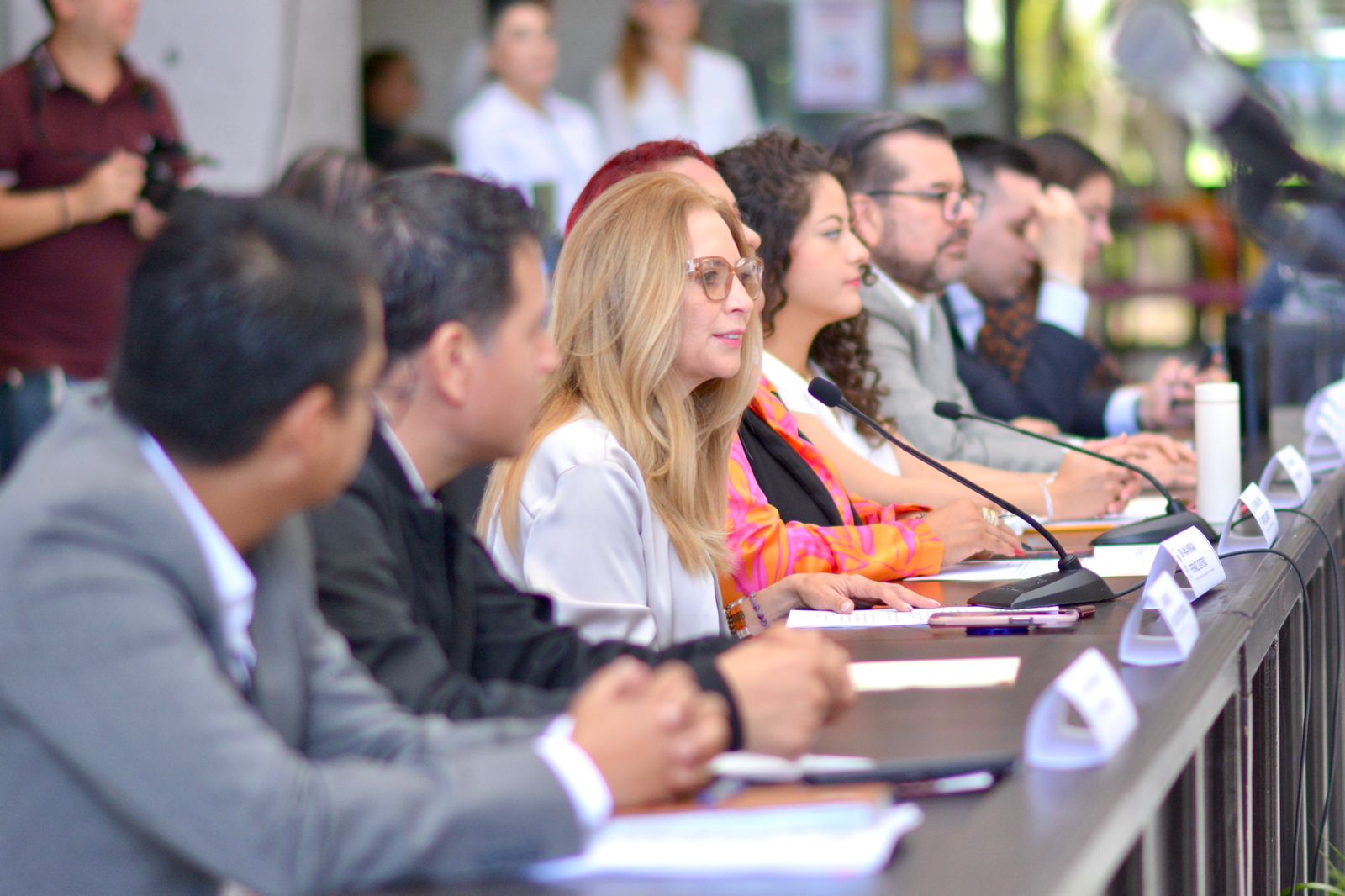 En calidad de moderadores, Adalberto Méndez López y Aarón Flores, Secretario Ejecutivo y Punto Focal, respectivamente, sobre Derechos de Personas con Discapacidad del Centro Iberoamericano para el Fomento del Derecho Internacional y los Derechos Humanos. Por parte del Congreso local: la directora de Servicios Jurídicos, Lilia Christfield Lugo y el secretario técnico de la Secretaría General, Marco Antonio Lara Quiróz, así como el Secretario General del Sindicato Único de Trabajadores al Servicio del Poder Legislativo (SUTSPL), José de Jesús Rodríguez Hernández. |