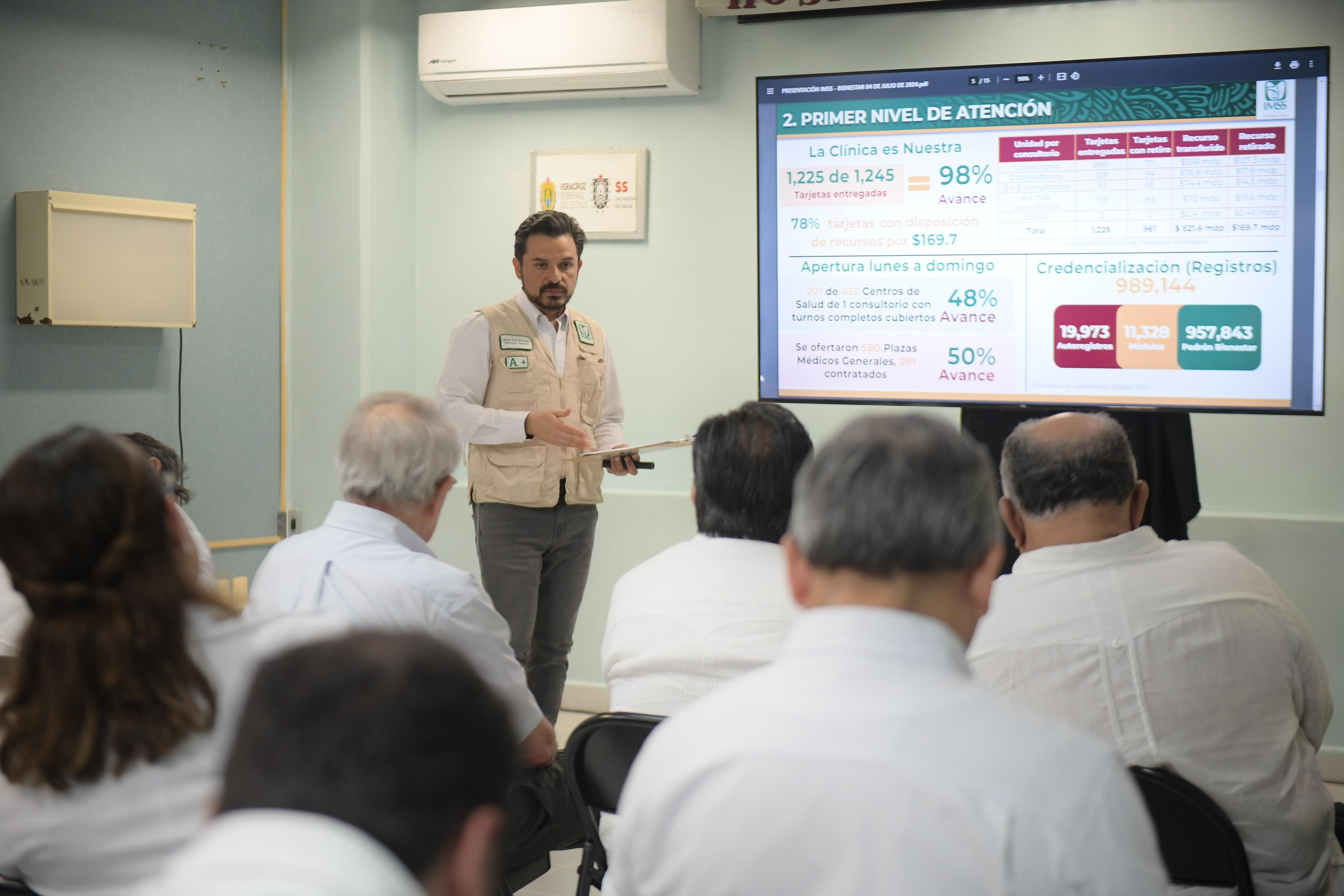 El Director General del Instituto Mexicano del Seguro Social (IMSS), Zoé Robledo, y el gobernador de Veracruz, Cuitláhuac García Jiménez, encabezaron una reunión de evaluación sobre la federalización de los servicios de salud. Dicha reunión estuvo enfocada en el seguimiento al avance de la infraestructura, conclusión de obras, adquisición de equipamiento médico y operación de hospitales del IMSS-Bienestar al servicio de la población veracruzana sin seguridad social.