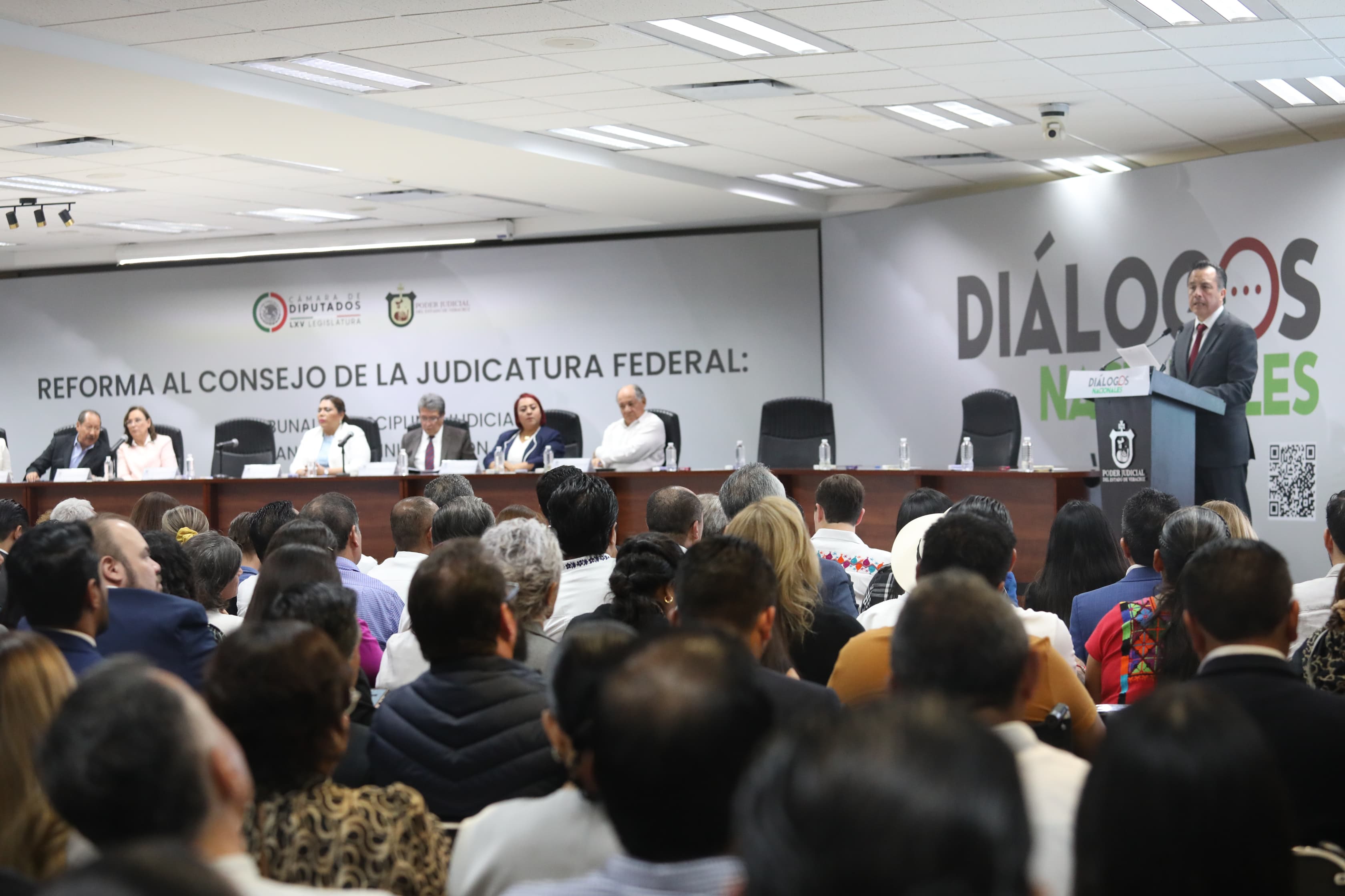 En nombre de la LXVI Legislatura del estado de Veracruz, la presidenta de la Mesa Directiva, diputada Adriana Esther Martínez Sánchez, asistió a la celebración de la quinta edición de los Diálogos Nacionales sobre la Reforma al Poder Judicial, realizada en la sede del Poder Judicial del Estado de Veracruz, con la anfitrionía de la presidenta del Tribunal Superior de Justicia y del Consejo de la Judicatura estatal, magistrada Lisbeth Aurelia Jiménez Aguirre. En este acto democrático, que contó con la presencia del gobernador del estado, ingeniero Cuitláhuac García Jiménez; de la gobernadora electa, ingeniera Rocío Nahle García, y del senador de la República, Ricardo Monreal Ávila, las y los ponentes disertaron sobre la reforma al Consejo de la Judicatura Federal, en relación con la creación del Tribunal de Disciplina Judicial y el órgano de administración.