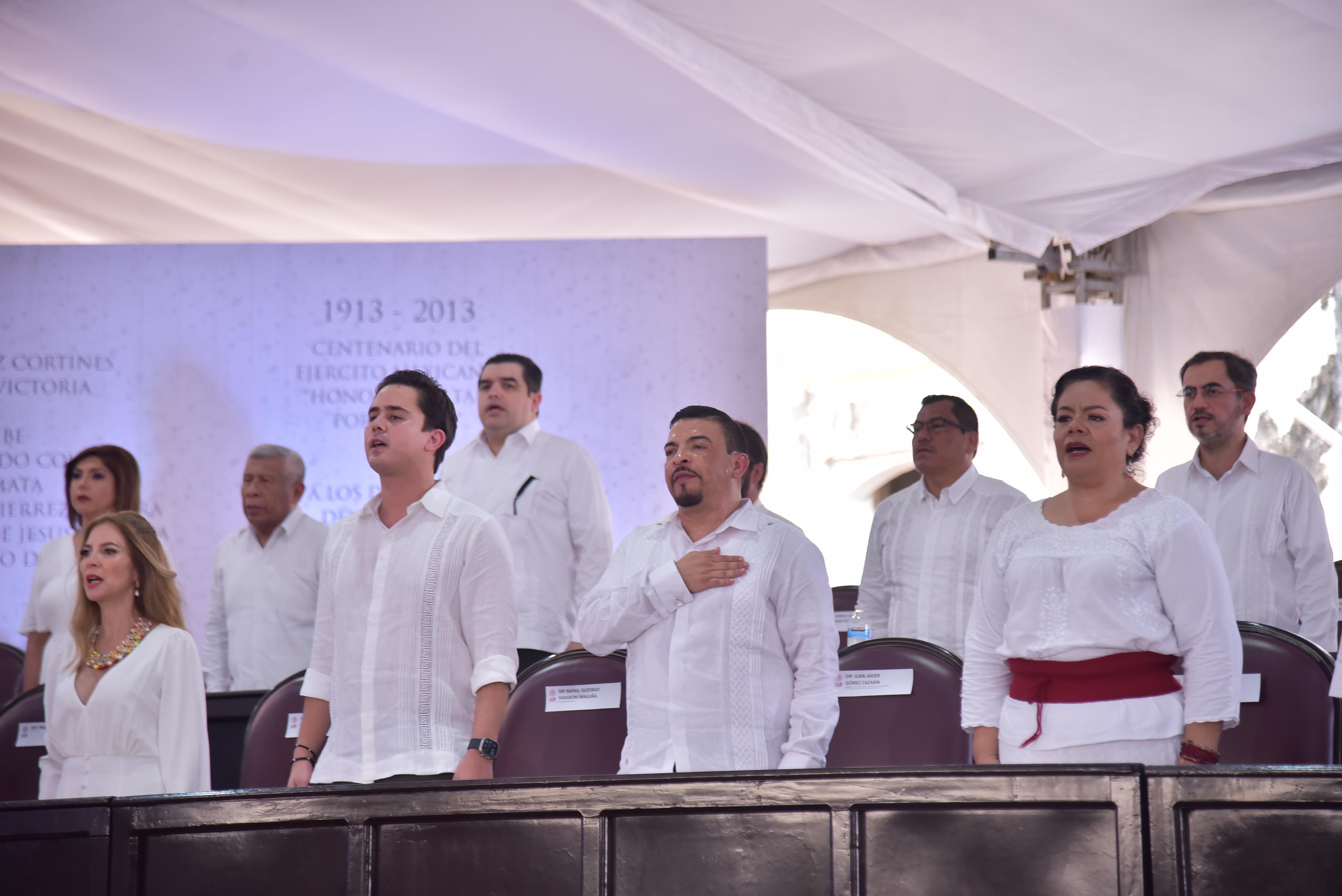 A su vez, en nombre del Grupo Legislativo de Morena, la diputada Eusebia Cortés Pérez, indicó que con esta conmemoración Veracruz celebra que el primer Congreso sesionaba en calidad de constituyente y redactaba la primera Constitución del estado en la ciudad Xalapa, firmada por el entonces gobernador Miguel Barragán, que ya garantizaba la igualdad de todas las personas ante la Ley y muchos valores que la inspiraron.
