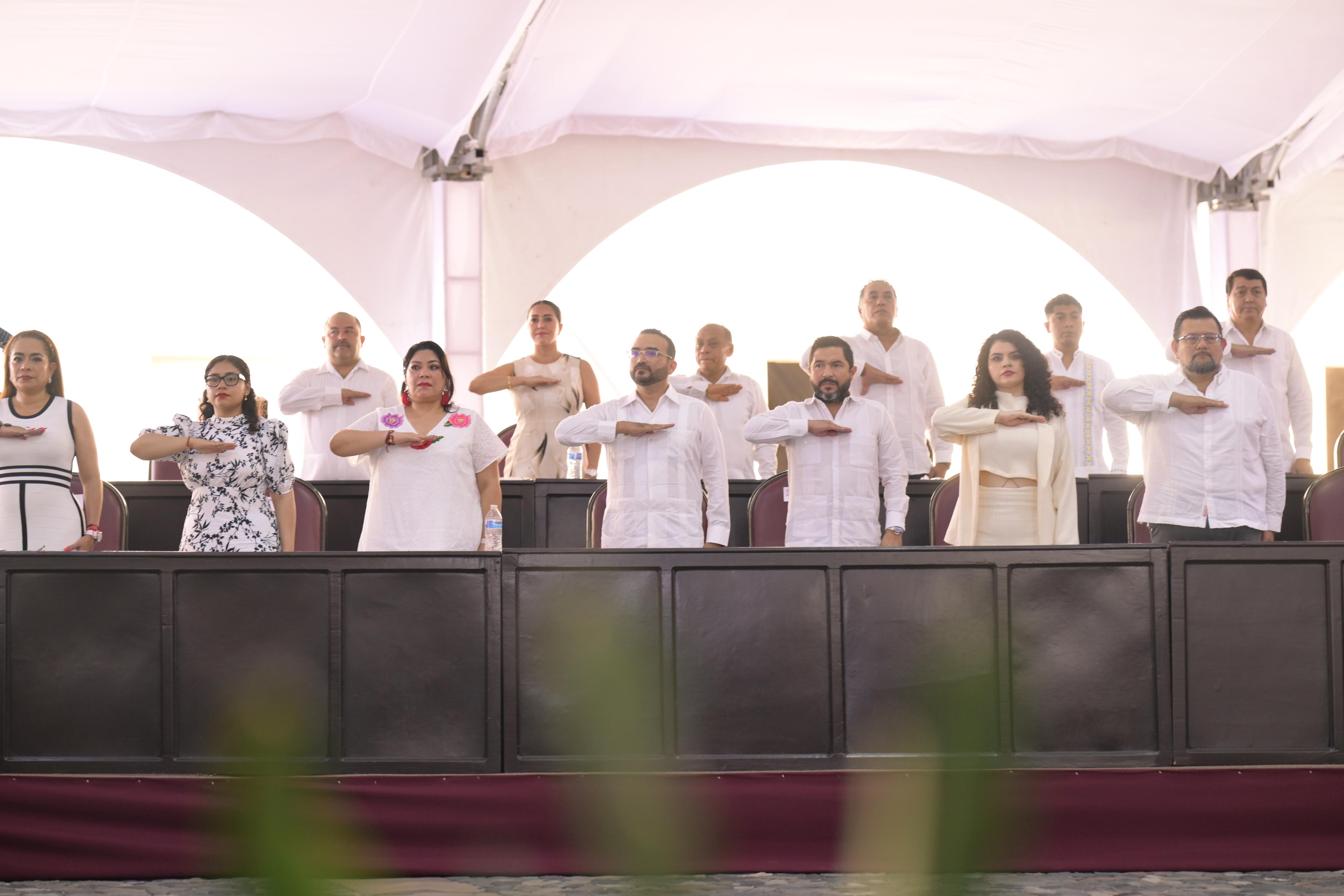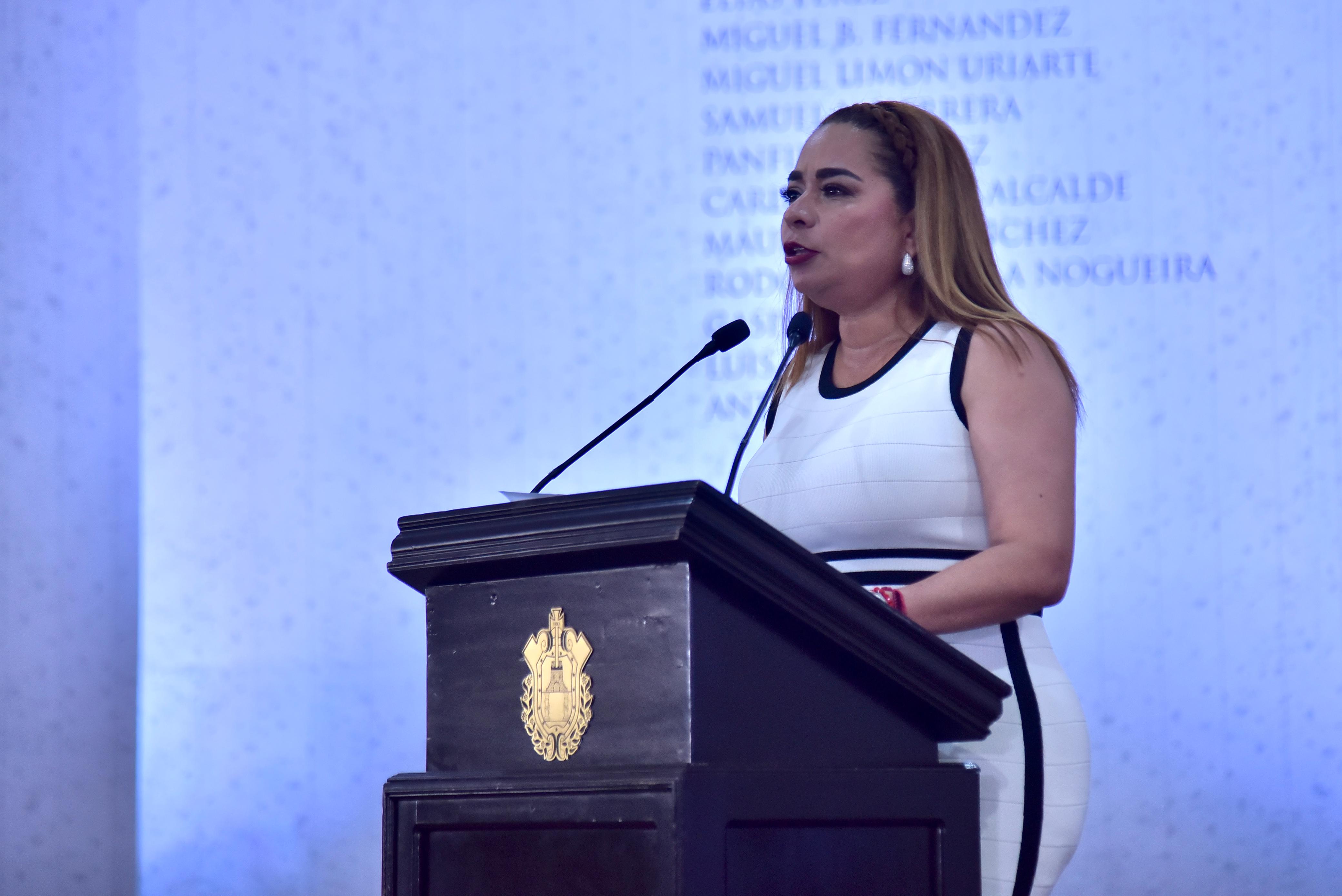 En primer término, la presidenta del Congreso, diputada Adriana Esther Martínez Sánchez, desde la tribuna, afirmó que “Veracruz no sería lo que es hoy sin la arquitectura normativa impulsada por mujeres y hombres que, amando a esta noble y grandiosa tierra, han sido protagonistas de su evolución”. Se dirigió a las y los integrantes de esta Soberanía para exhortarles a “dejar constancia irrefutable de que la aspiración máxima del acontecer legislativo veracruzano ha sido, es y será honrar la grandeza de las raíces que nos dan identidad y sentido de pertenencia”. Adriana Esther Martínez convocó a las y los veracruzanos a caminar en pos del progreso “a través de un presente que nos llena de orgullo y, con energía, escalar nuevos niveles de transformación con la certeza de que nos espera un futuro con los brazos abiertos y horizontes sumamente promisorios”.