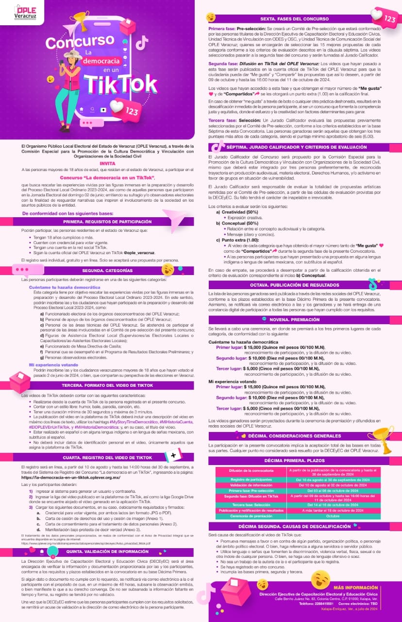 | TAGS: OPLE Veracruz | Convocatoria | Concurso | Democracia | Tiktok | |
