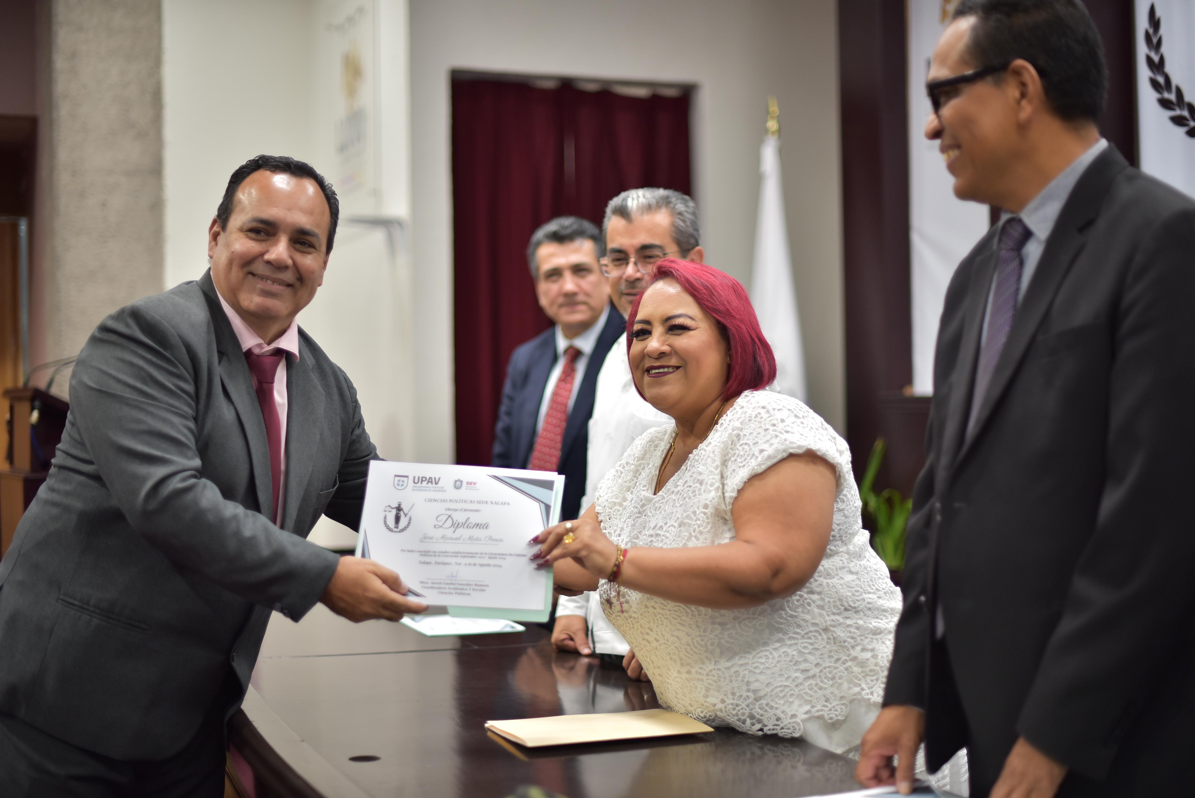 Asimismo, reconoció el esfuerzo de la comunidad docente y administrativa de la UPAV, por el compromiso con la sociedad para forjar nuevos profesionales con vocación de servicio que respondan a las necesidades de Veracruz. Al acto asistieron, por la UPAV, el director y fundador de la licenciatura de Ciencias Políticas, Lenin Torres Antonio; la coordinadora y docente Astrid Lisette González Romero, y Ángel Rafael Martínez Alarcón, docente y fundador de la universidad; por parte del Ayuntamiento de Xalapa, Erik Córdoba del Valle; en representación de la Secretaría de Agricultura y Desarrollo Rural (Sader), Pedro Hussein Lases Mendoza, así como personal directivo y administrativo de dicha casa de estudios.
