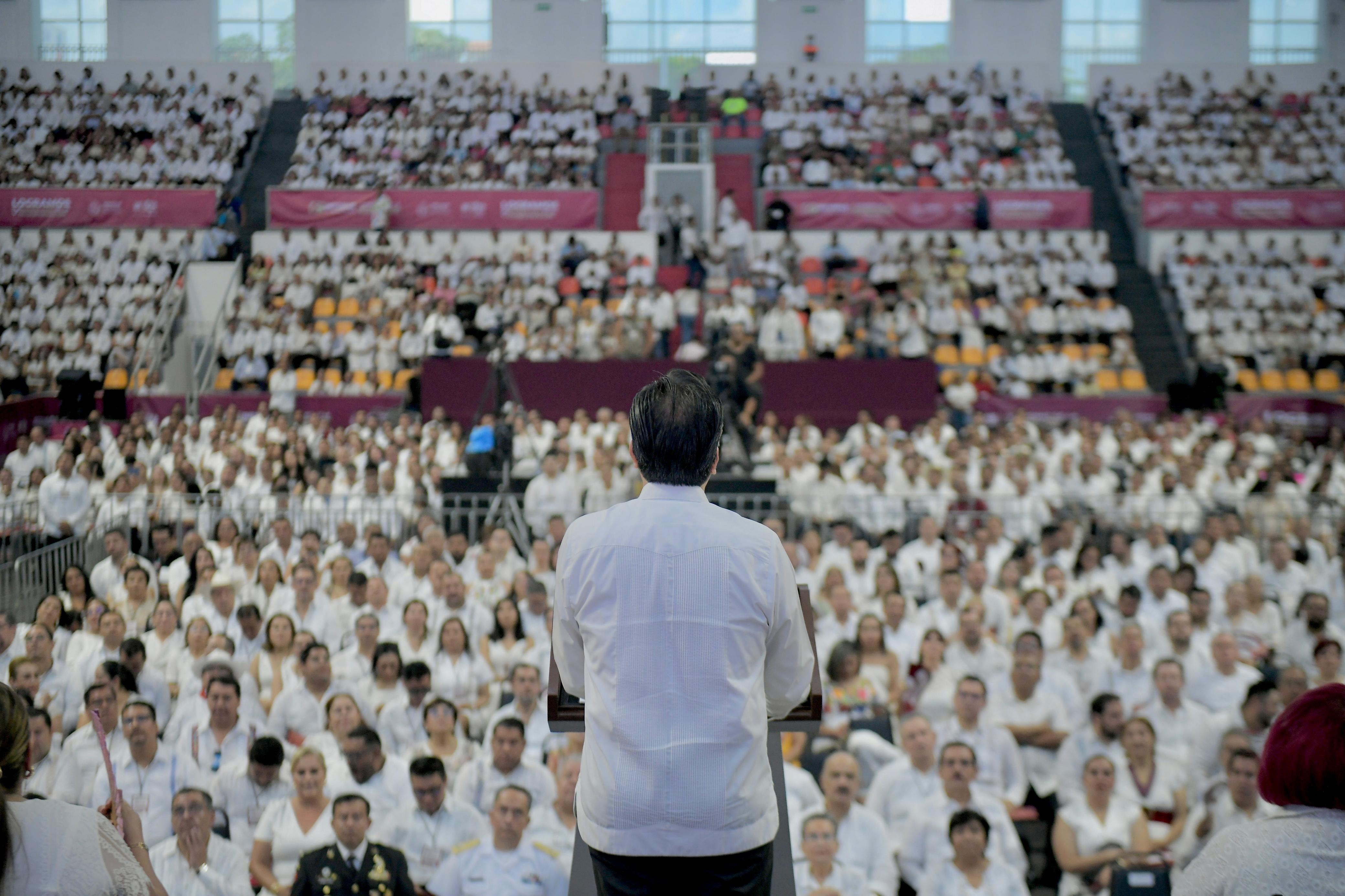“Digan lo que digan nuestros adversarios y uno que otro incrédulo, ahí están las obras y los resultados; quienes luchamos por esta realidad, cambiando el mal gobierno, denunciado la corrupción y exigiendo justicia para nuestro pueblo sabíamos que ineludiblemente algún día habíamos de triunfar. Lo hemos logrado”. En el renovado Auditorio Benito Juárez de la ciudad de Veracruz, acompañaron al mandatario titulares y directores de las dependencias, las presidentas de los poderes Judicial y Legislativo, magistrada Lisbeth Aurelia Jiménez Aguirre y diputada Adriana Esther Martínez Sánchez, además de la subsecretaria de Ordenamiento Territorial y Agrario del Gobierno de México, Edna Elena Vega Rangel. |