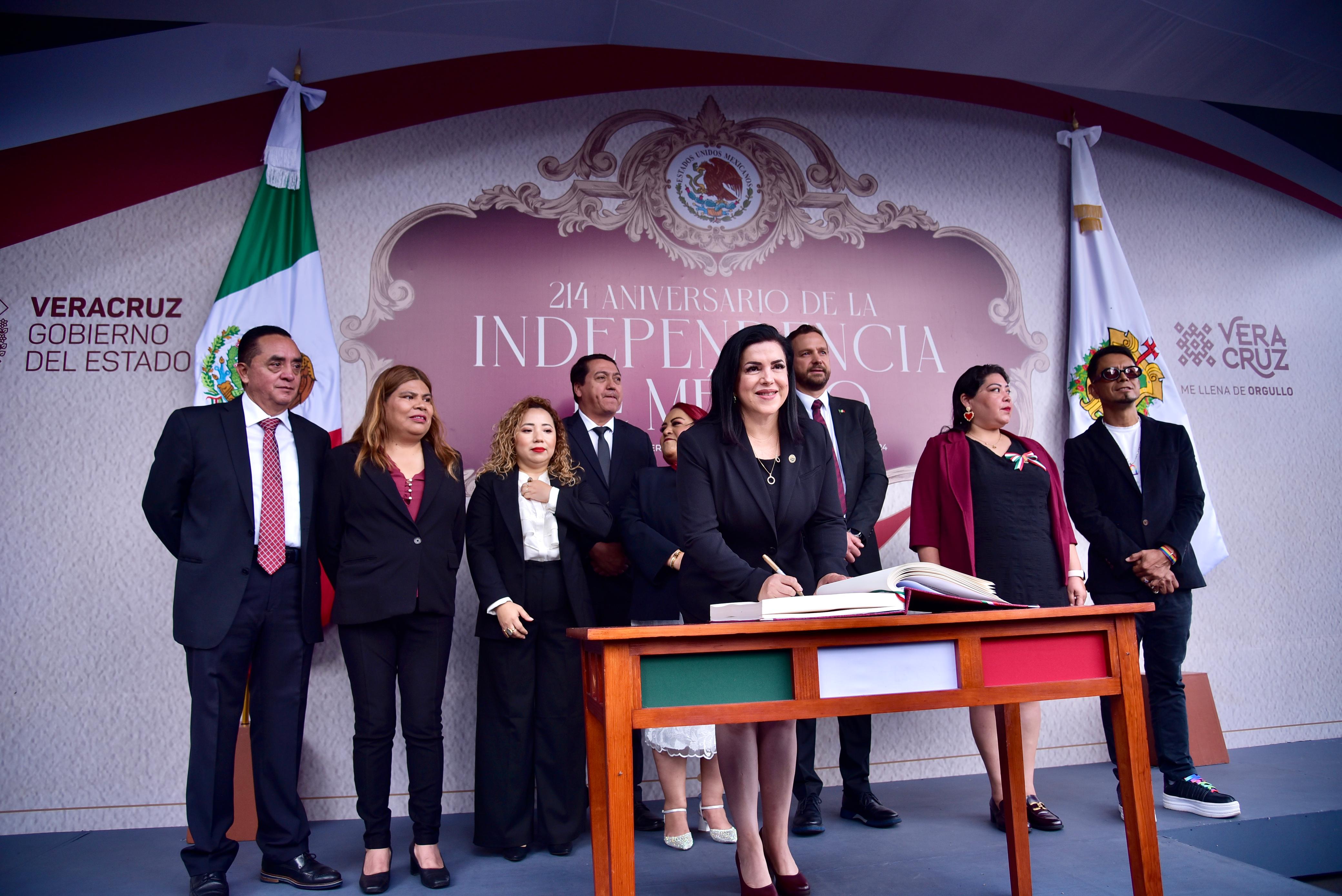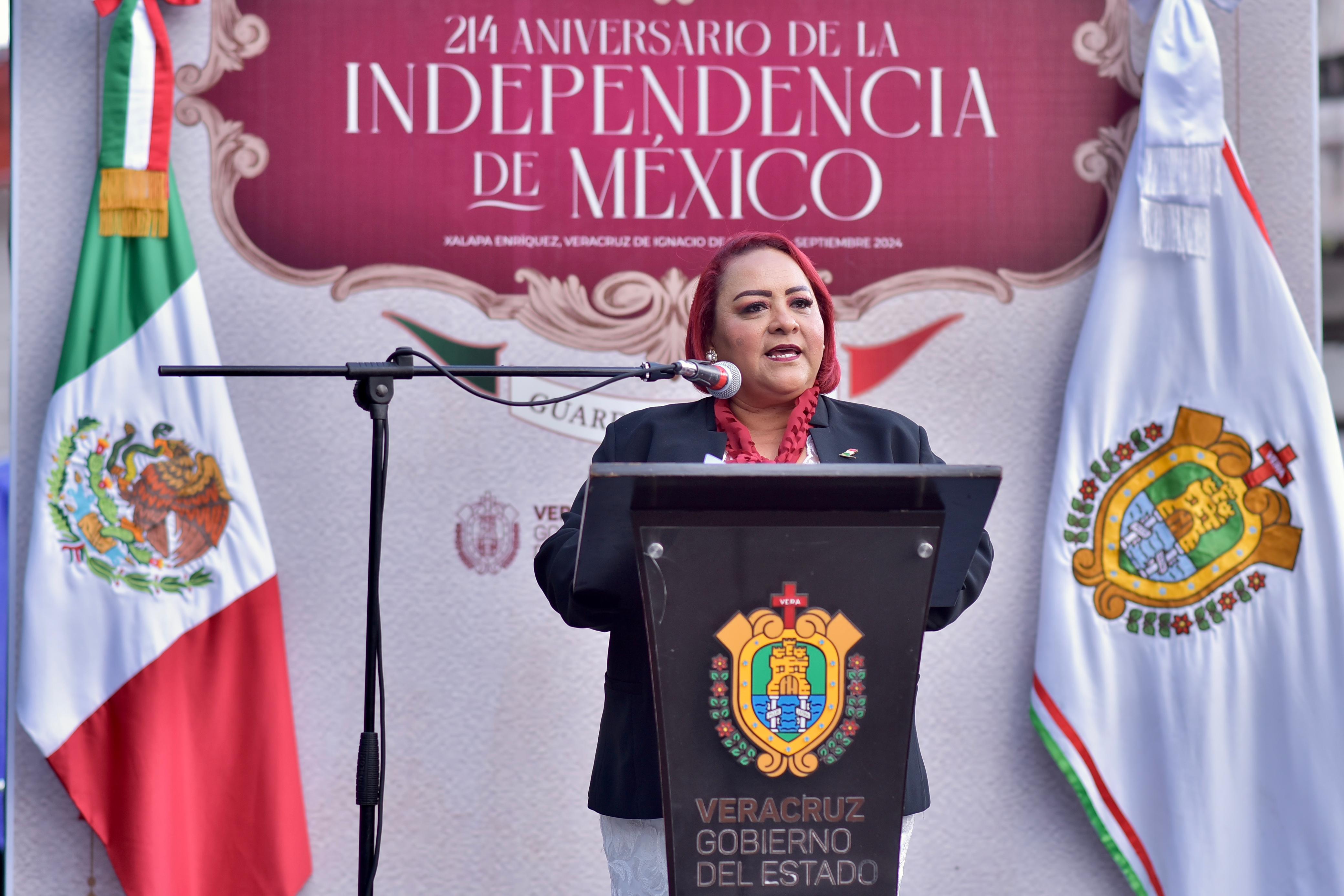 Honrar la memoria de Don Miguel Hidalgo y Costilla y de todas aquellas personas que con valentía lo dieron todo por la patria debe motivarnos a reflexionar sobre la trascendencia de las acciones u omisiones que tenemos como mexicanos, expresó la presidenta de la Mesa Directiva de la LXVI Legislatura, diputada Adriana Esther Martínez Sánchez, durante la Guardia de Honor con motivo del 214 aniversario de la independencia de México. En su mensaje ante el monumento al Padre de la Patria, ubicado en el parque de Los Berros de la ciudad de Xalapa, la legisladora dijo que a más de dos siglos de este suceso, el México libre e independiente evidencia la amplia similitud en sus deseos por habitar un territorio en el que imperen los principios y valores elementales de mantener vigente una cultura de paz, igualdad, legalidad e institucionalidad.