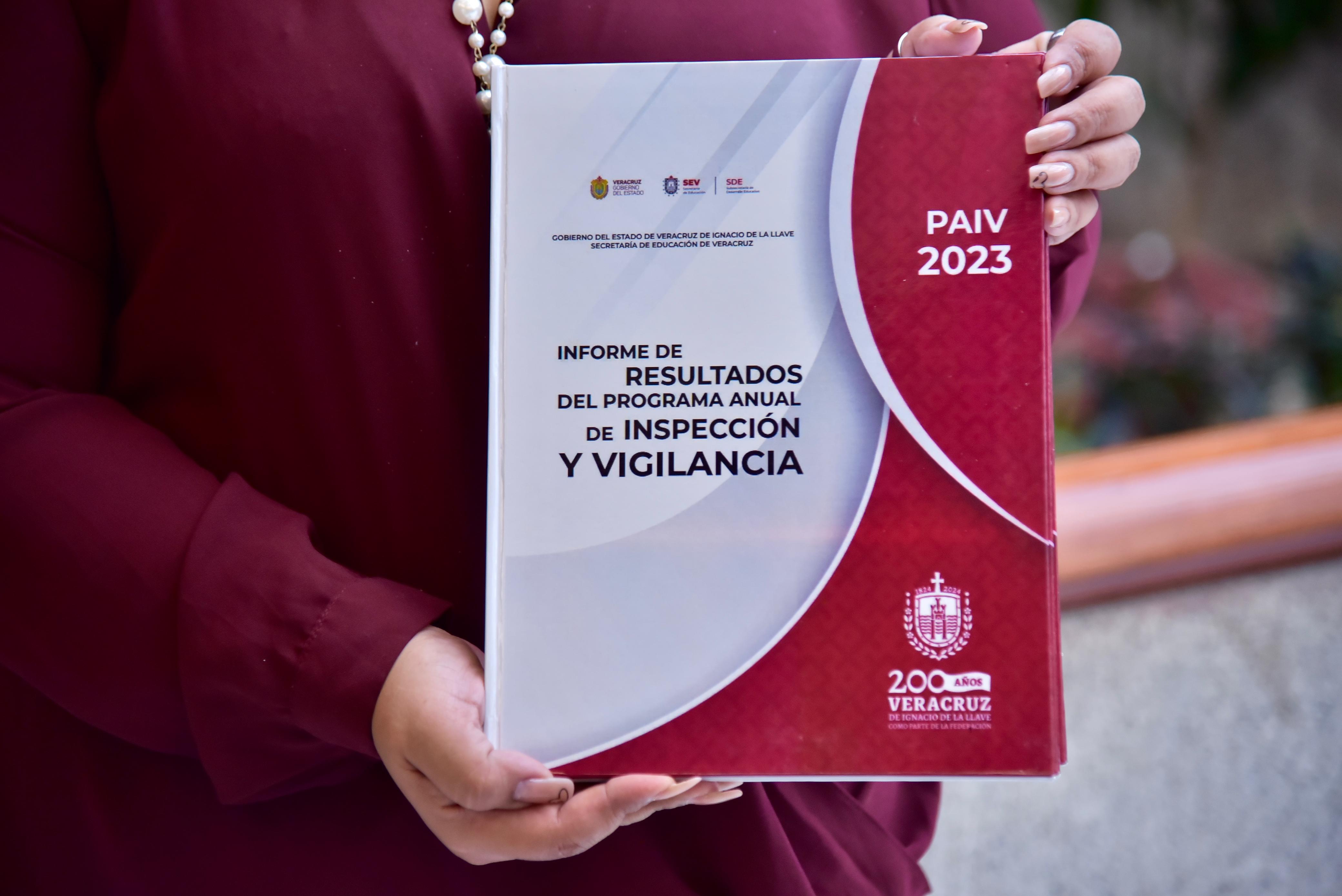 La presidenta de la Comisión Permanente de Educación y Cultura de la LXVI Legislatura, diputada Illya Dolores Escobar Martínez, recibió del Subsecretario de Desarrollo Educativo de la Secretaría de Educación de Veracruz (SEV), Moisés Pérez Domínguez, el Informe de Resultados del Programa Anual de Inspección y Vigilancia, correspondiente a 2023.