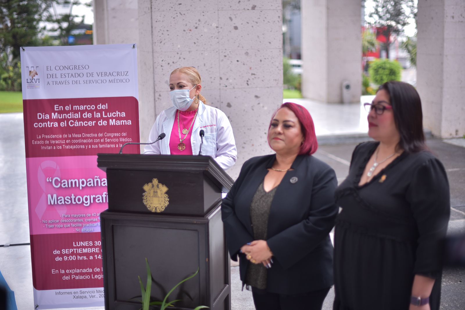 En el marco del Día Mundial contra el Cáncer de Mama y con la finalidad de continuar con las acciones promovidas desde hace seis años, en materia de prevención de enfermedades, en el Congreso del Estado de Veracruz se realizó la Jornada de Mastografías, con el apoyo de la presidenta de la Mesa Directiva, diputada Adriana Esther Martínez Sánchez y la Secretaría de Salud del estado (SS) por conducto de los Servicios de Salud de Veracruz (Sesver). En su mensaje, la legisladora Martínez Sánchez reconoció a las mujeres trabajadoras que siempre participan en las jornadas de salud que se llevan a cabo en este Congreso y, agregó, que eso significa que son personas que valoran su vida y que fomentan la cultura de la prevención.