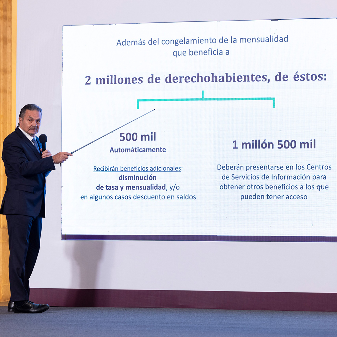 Los derechohabientes y deudores del INFONAVIT no pudieron recibir una mejor noticia esta mañana desde Palacio Nacional. Una excelente y justa medida la que fue tomada por la Presidenta Claudia Sheinbaum al congelar a partir de hoy el saldo y las mensualidades de 2 millones de créditos hipotecarios que fueron otorgados en “Veces Salario Mínimo” (VSM) antes del 2013. El director del Instituto, Octavio Romero, explicó a detalle en qué consiste el beneficio y porqué se tomó la medida. En total el beneficio es para 4 millones de deudores.