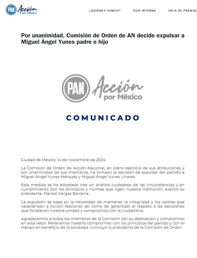 ![]() ¡Expulsados! Comisión de Orden del PAN expulsa a los dos Migueles Yunes / |