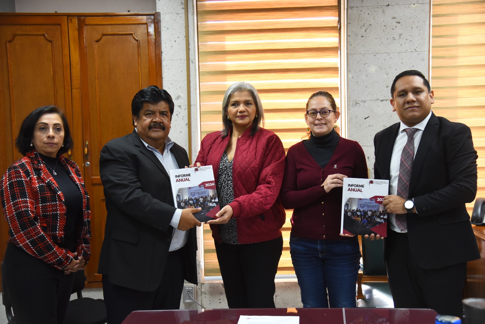 Atestiguó la entrega del informe de la CEAPP, la secretaria de la Comisión Permanente para la Atención y Protección de Periodistas, diputada Daniela Flores Barnils. Acompañaron al presidente del organismo autónomo, Silverio Quevedo Elox, el secretario Ejecutivo, Israel Hernández Sosa y la titular de la Contraloría Interna, Ixchel Elizalde Sánchez.