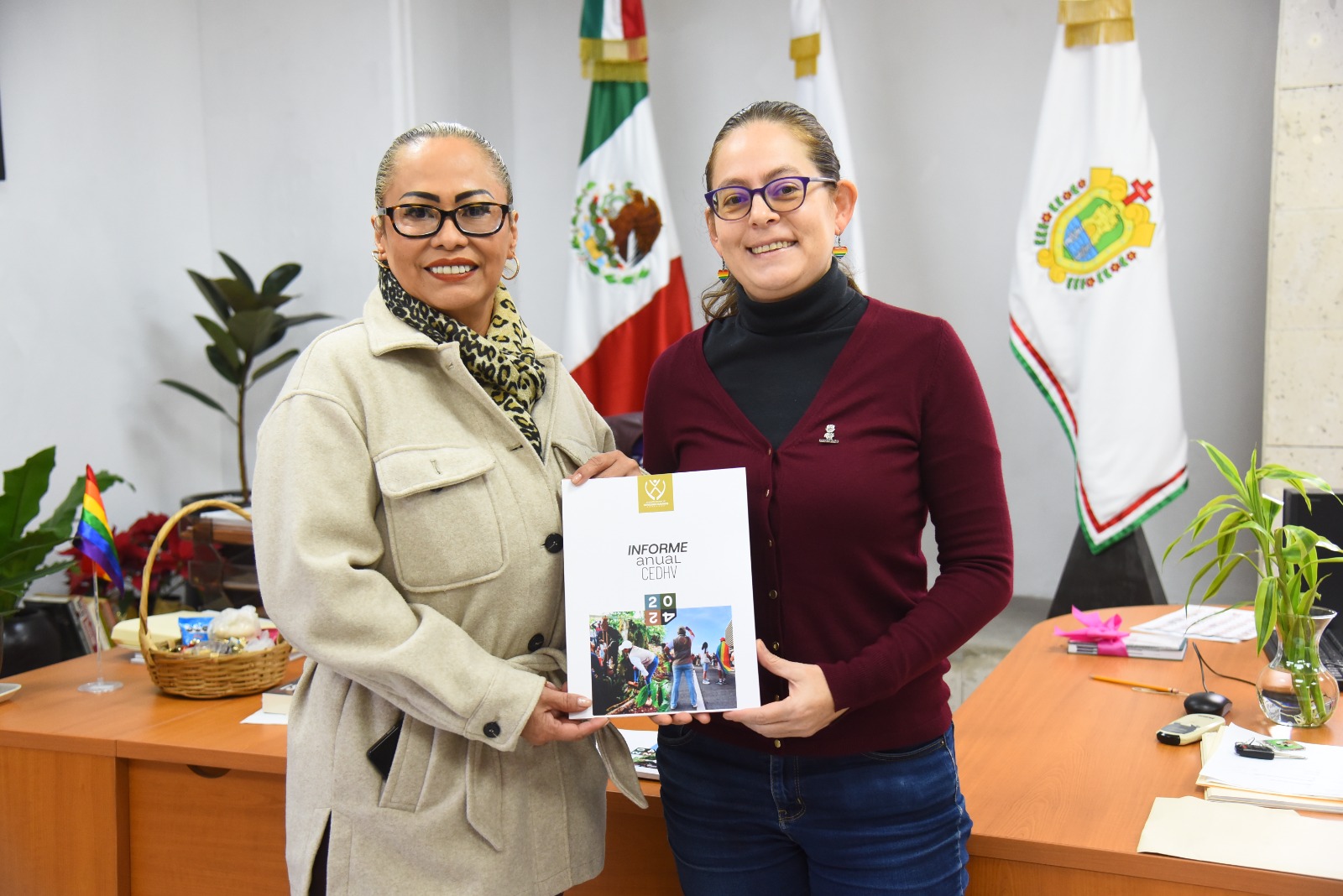 Xalapa, Ver., 12 de diciembre de 2024.- La presidenta de la Mesa Directiva de la LXVII Legislatura del Estado de Veracruz, diputada Tanya Carola Viveros Cházaro, recibió los informes de labores 2024 de la y el titular de las Comisiones Estatal de Derechos Humanos (CEDH), Namiko Matzumoto Benítez, y Estatal para la Atención y Protección de Periodistas (CEAPP), Silverio Quevedo Elox, quienes cumplen en tiempo y forma con lo dispuesto en el párrafo segundo del Artículo 67 de la Constitución Política local.