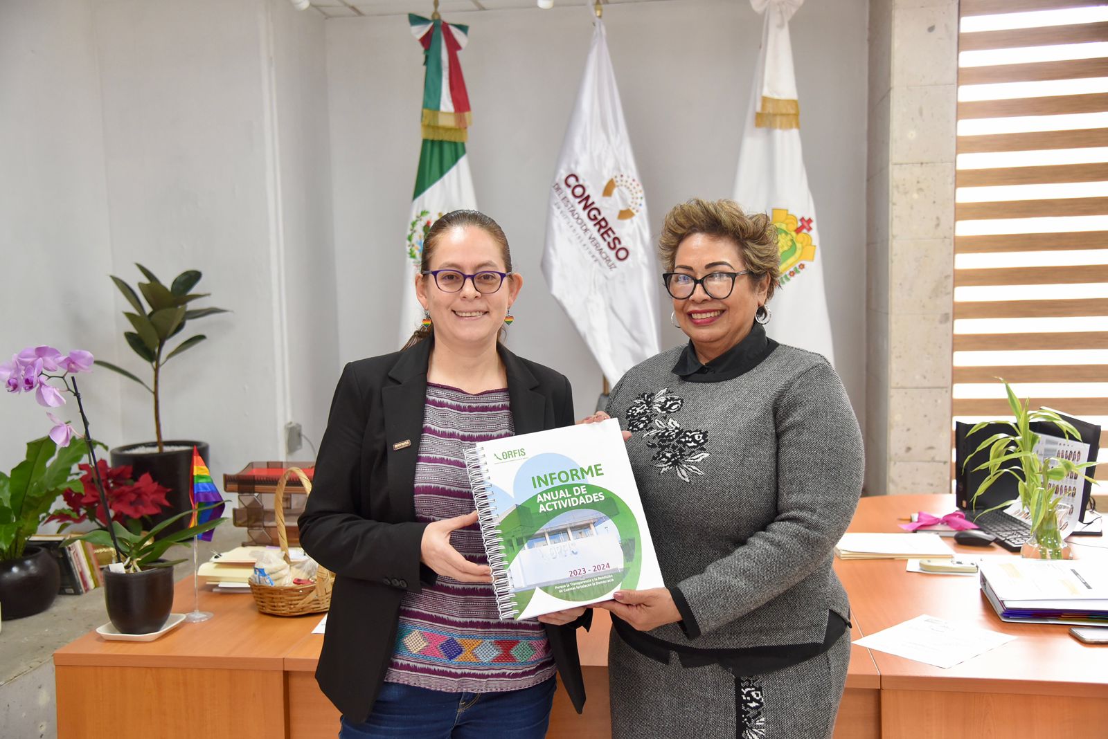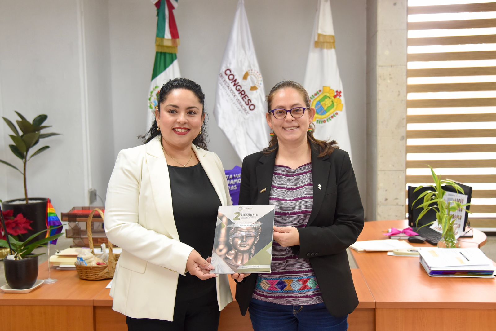 Posteriormente, la legisladora realizó lo conducente con la magistrada presidenta del Trijaev, Leticia Aguilar Jiménez, de acuerdo con la disposición constitucional de informar a la representación popular sobre las principales acciones realizadas durante el año. El párrafo segundo del Artículo 67 de la Carta Magna estatal establece que “para efectos de que los Organismos Autónomos del Estado rindan cuentas sobre el estado que guarda su gestión, deberán presentar anualmente un informe de actividades a los Poderes Legislativo y Ejecutivo dentro de los primeros quince días del mes de diciembre, y sus titulares comparecer ante el Poder Legislativo en sesión pública en la última quincena del mes de enero, conforme al formato que establezca la Ley Orgánica del Poder Legislativo y su respectivo reglamento. "El Tribunal Estatal de Justicia Administrativa sólo estará obligado a presentar el informe de actividades".