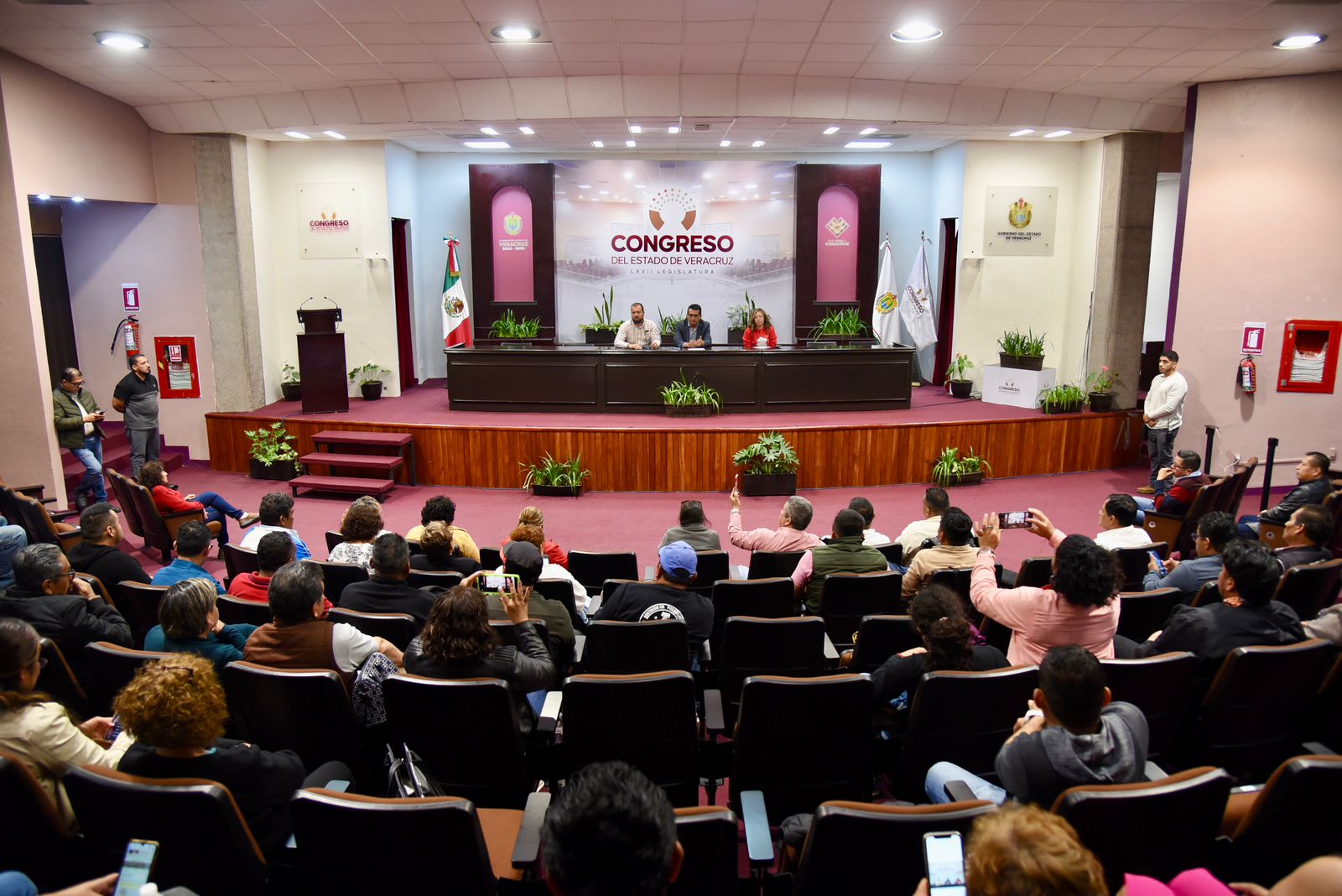 Xalapa, Ver., 19 de diciembre de 2024.- En el auditorio Sebastián Lerdo de Tejada del Palacio Legislativo, este jueves, el presidente de la Junta de Coordinación Política de la LXVII Legislatura, diputado Esteban Bautista Hernández, atendió a integrantes del Movimiento Magisterial Popular Veracruzano (MMPV), de quienes reconoció la constancia en la lucha que han librado en defensa del gremio.