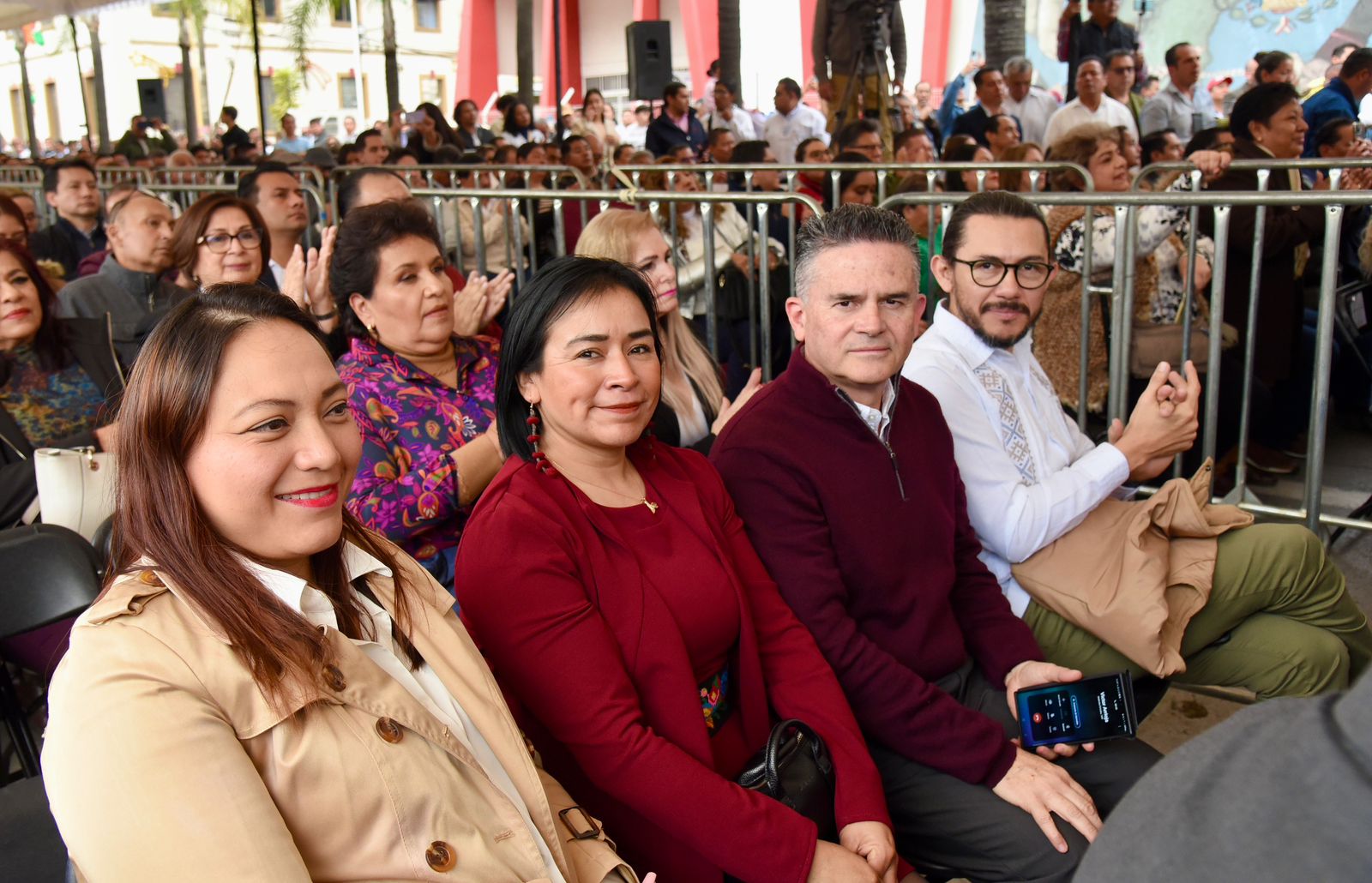 Xalapa, Ver., 07 de enero de 2025.- En representación del Congreso del Estado de Veracruz, la presidenta de la Mesa Directiva, diputada Tanya Carola Viveros Cházaro, y el presidente de la Junta de Coordinación Política (Jucopo), diputado Esteban Bautista Hernández, encabezaron el grupo de legisladoras y legisladores locales que asistieron a la conmemoración del aniversario 118 de los Mártires de Río Blanco. Este acto, encabezado por la gobernadora de Veracruz, Rocío Nahle García, contó con la presencia de líderes sindicales, representantes populares federales, servidores públicos municipales y de la administración pública estatal. Por la LXVII Legislatura, asistieron las diputadas Angélica Peña Martínez, Guadalupe Vázquez González, Tania María Cruz Mejía, Dulce María Hernández Tepole y Dorheny García Cayetano, así como los diputados Igor Fidel Rojí López, Diego Castañeda Aburto, Carlos Marcelo Ruiz Sánchez, Alejandro Porras Marín y Felipe Pineda Barradas.