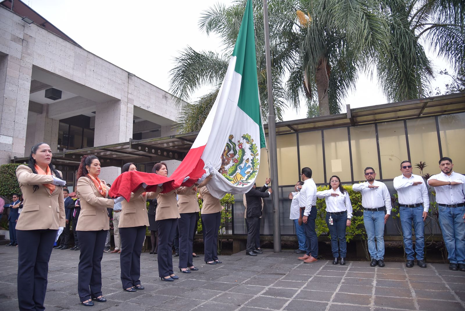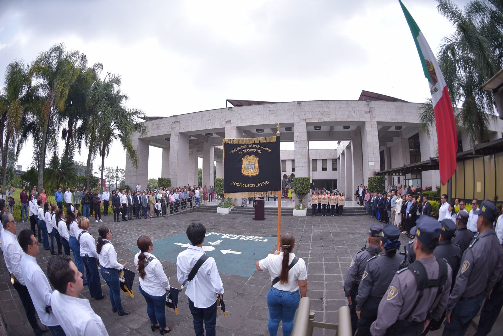 En este acto cívico se contó con la participación de la escolta y la banda de guerra del Sindicato Único de Trabajadores al Servicio del Poder Legislativo (SUTSPL) y la asistencia del secretario general, Domingo Bahena Corbalá; la secretaria de Fiscalización, Alma Leticia Patiño Gabriel; el secretario de Servicios Administrativos y Financieros, Alfredo Alberto Martínez Gómez; el director de Recursos Humanos, Francisco Javier Ramírez Hernández; la directora de Recursos Materiales y Servicios Generales, Ana Patricia González Bautista y la directora de Tesorería, Iveth Martínez Hernández, así como coordinadores, directores, jefes de departamento y personal administrativo de las diversas áreas del Congreso del Estado.
