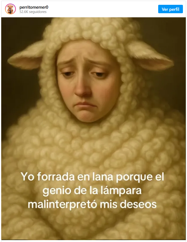 | Las redes sociales están inundadas de divertidos memes surrealistas generados por inteligencia artificial que representan los deseos de forma literal y con un toque de humor irónico |