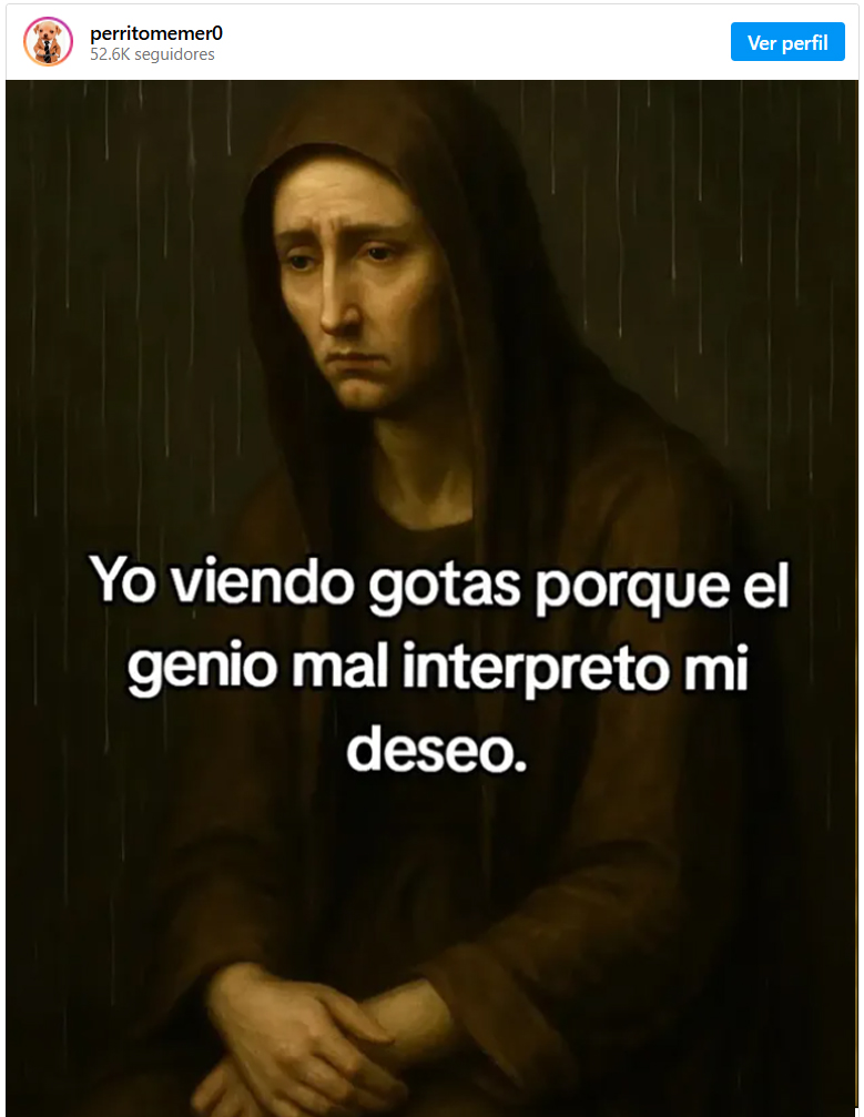 Una nueva ola de memes está invadiendo las redes sociales y se ha convertido en la última tendencia viral en plataformas como TikTok, Instagram, Facebook y X. Esta corriente humorística, que mezcla referencias culturales y tecnología, tiene como protagonista a un genio de la lámpara que, al cumplir deseos, los malinterpreta de formas absurdas y cómicas. El concepto es sencillo, pero efectivo: un personaje formula un deseo que, por ser ambiguo o mal expresado, es cumplido de manera literal, resultando en situaciones hilarantes. La figura del genio de la lámpara, que proviene de la famosa historia de Aladino y la lámpara maravillosa de Las mil y una noches, se ha transformado en un meme moderno gracias a la inteligencia artificial. En el cuento, Aladino recibe tres deseos del genio, pero en esta versión digital, el genio parece tener dificultades para comprender correctamente lo que se le pide. Esto da lugar a una serie de imágenes generadas por IA que representan deseos de una forma exagerada y visualmente dramática. Una de las imágenes más virales muestra a una mujer rodeada de tunas, el fruto del nopal, después de haber pedido al genio ser “tuneada”, una expresión que en muchos países se refiere a modificar el cuerpo o la imagen estética. Sin embargo, debido a la ambigüedad del término, el genio interpreta el deseo de manera literal y la mujer termina rodeada de tunas, en lugar de experimentar un cambio de imagen. La frase “Yo toda tuneada porque el genio de la lámpara malinterpretó mi deseo” acompaña esta imagen, que rápidamente se volvió un éxito en redes sociales. El uso de herramientas de inteligencia artificial como Midjourney, DALL·E y otros generadores de imágenes permite a los usuarios crear escenas surrealistas que combinan el estilo clásico de pintura al óleo con situaciones modernas llenas de ironía. Estos memes se destacan por su tono visualmente dramático, que se ve potenciado por la exageración y el juego con expresiones comunes mal formuladas. El humor de estos memes radica en la interpretación literal de frases ambiguas. Algunos de los ejemplos más populares incluyen personas que piden "una vida más dulce" y terminan rodeadas de golosinas, o quienes piden "más movimiento en su vida" y acaban arrojados al mar. La clave está en la sorpresa y en lo absurdo de los resultados, lo que hace que cada meme sea único y gracioso. La figura del genio sigue siendo relevante en la cultura popular, gracias a su presencia en películas, libros y series, y ahora, en el ámbito digital. Los tres deseos de Aladino ofrecen un lienzo perfecto para explorar situaciones hipotéticas, lo que le da a esta tendencia viral una gran versatilidad. No es de extrañar, entonces, que esta corriente haya sido tan adoptada por los usuarios, quienes encuentran en la figura del genio un espacio para reírse de los malentendidos y los deseos mal formulados. Para quienes deseen unirse a esta divertida tendencia, todo lo que necesitan es acceso a una plataforma de inteligencia artificial generativa. Basta con escribir una descripción detallada de un deseo ambiguo y dejar que la herramienta haga el resto. El resultado será una imagen surrealista acompañada de un texto sarcástico, que hará reír a quienes la vean.